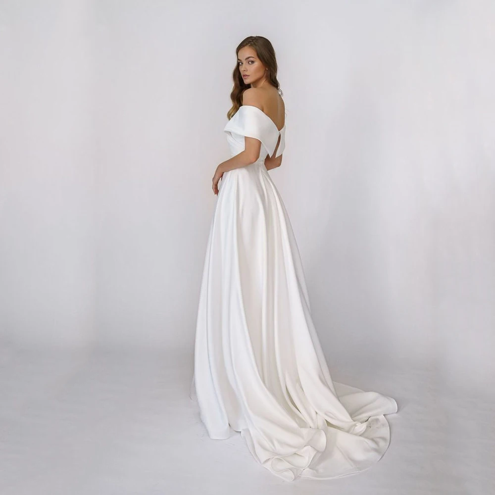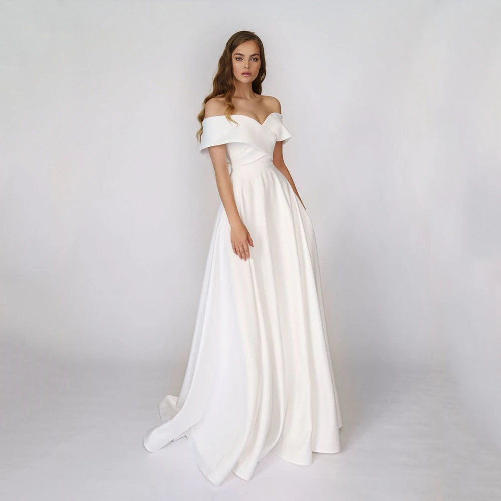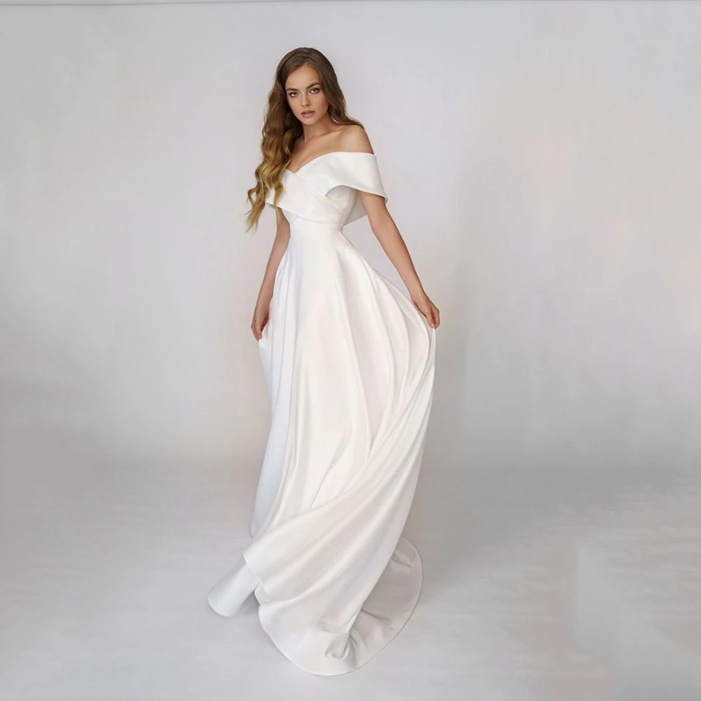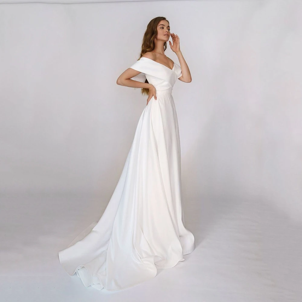 Простое свадебное платье UZN, а-силуэт, с открытыми плечами и короткими рукавами, с V-образным вырезом, мягкое атласное свадебное платье на молнии сзади, платье для невесты