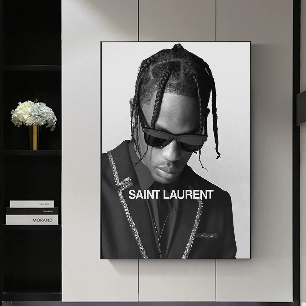 Черно-белая картина с тревисом Скоттом, музыкальная звезда, холст, рэп, хип-хоп, модная модель, художественный постер, Настенный декор, картина для дома