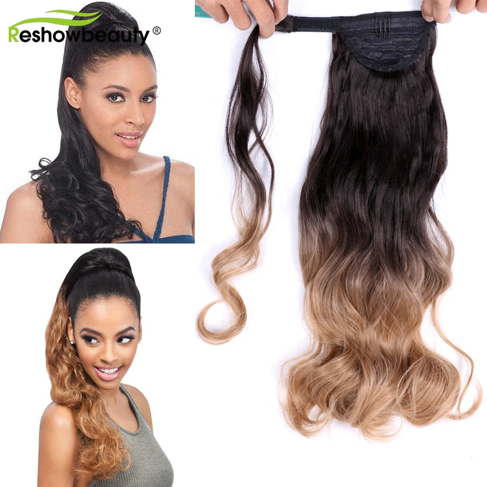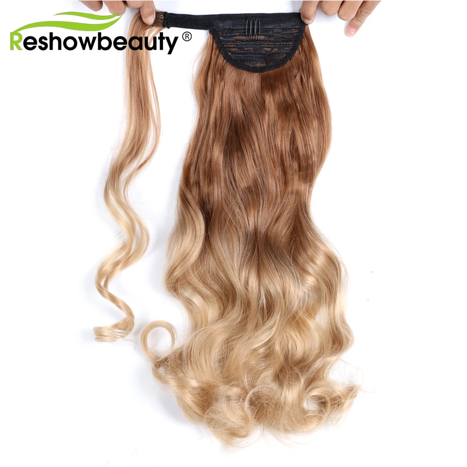Длинные синтетические хвостики для прически, свободные волнистые волосы, обернутые вокруг, накладные волосы на заколках, 22 дюйма, 100 г, натуральные поддельные волосы, Reshowbeauty