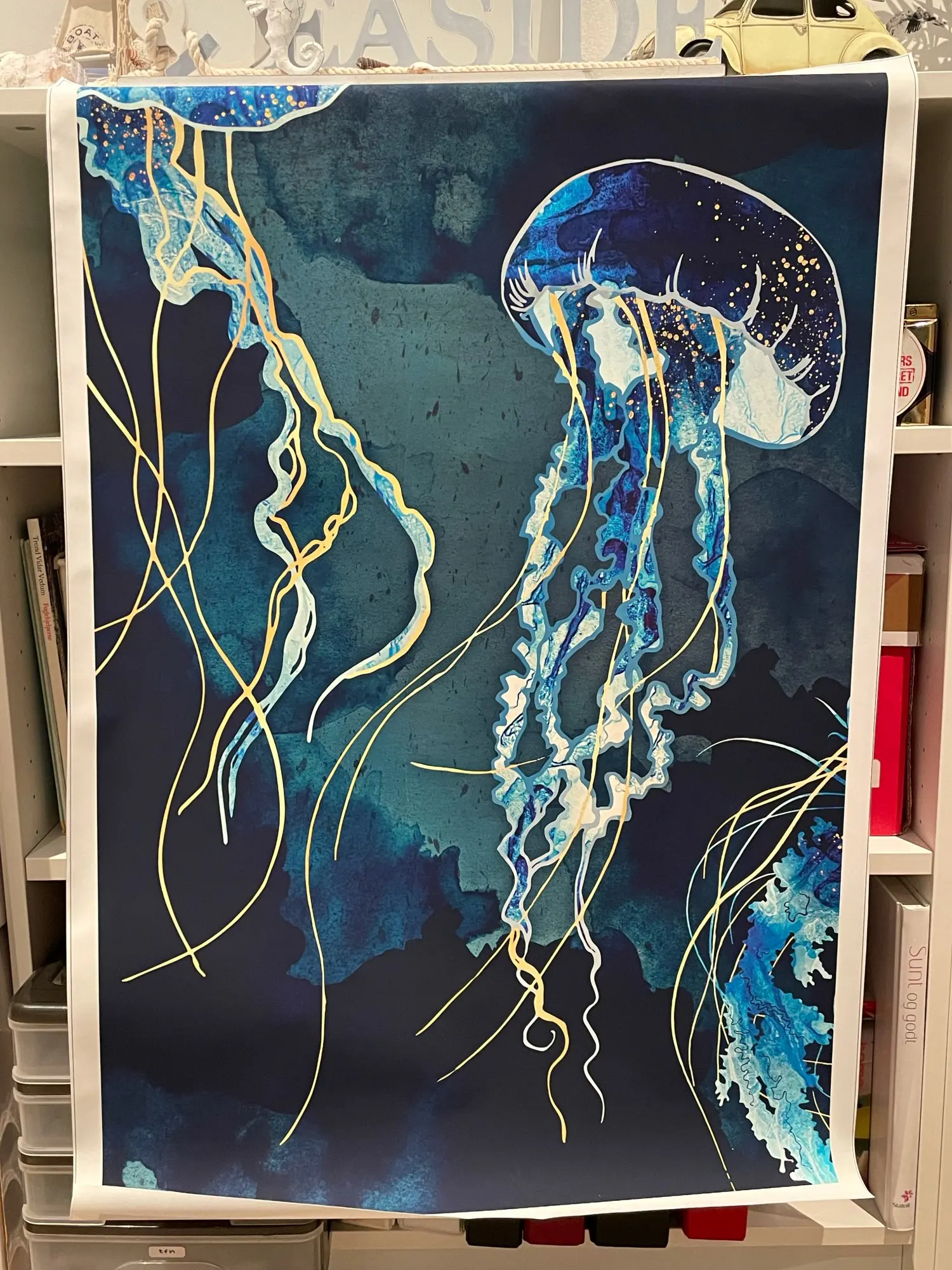 Морская Золотая лодка Абстрактная Картина на холсте скандинавские в...