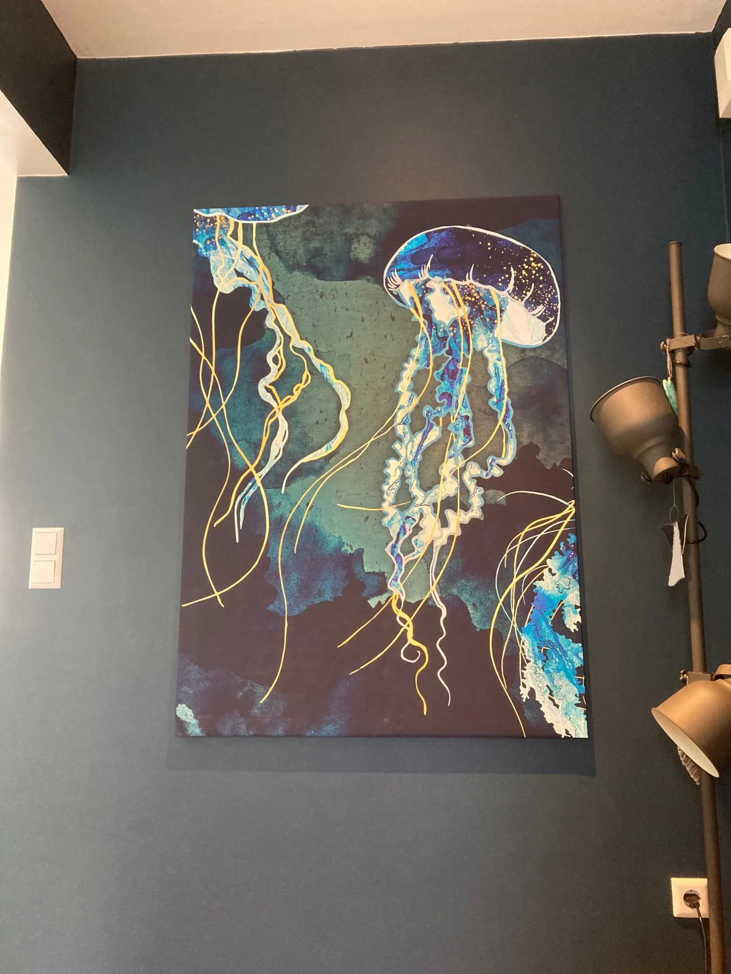Абстрактная картина большого размера на бирюзовом холсте, современн...