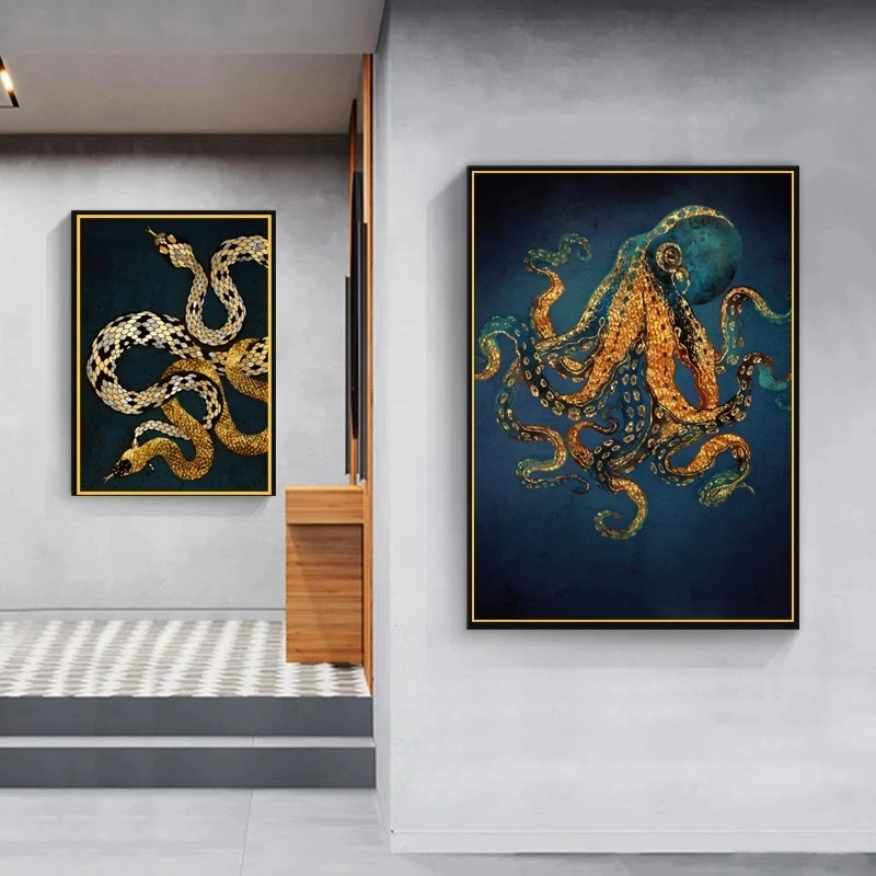 Настенный постер с абстрактным изображением, картина на золотом хол...