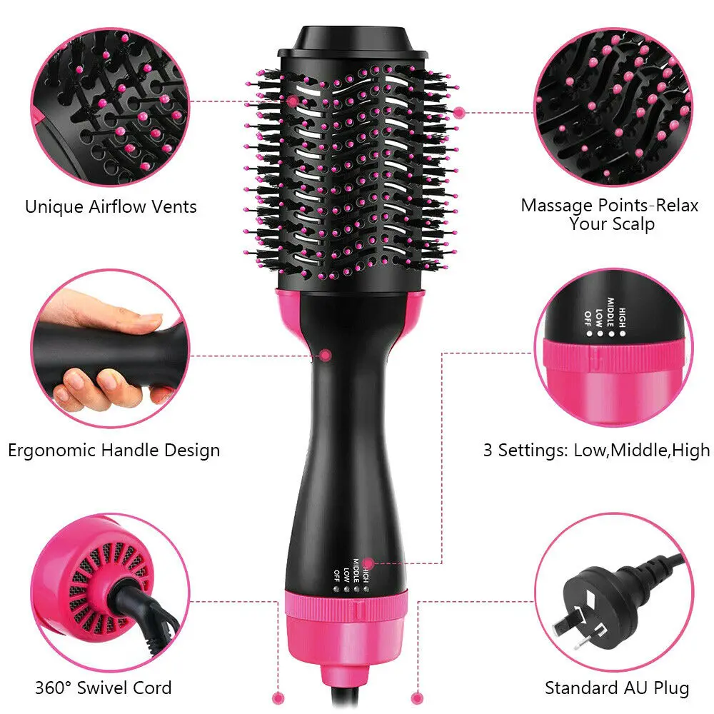 Фен и стайлер 3-в-1, щетка для придания объема, Расческа с горячим ...