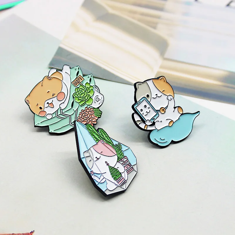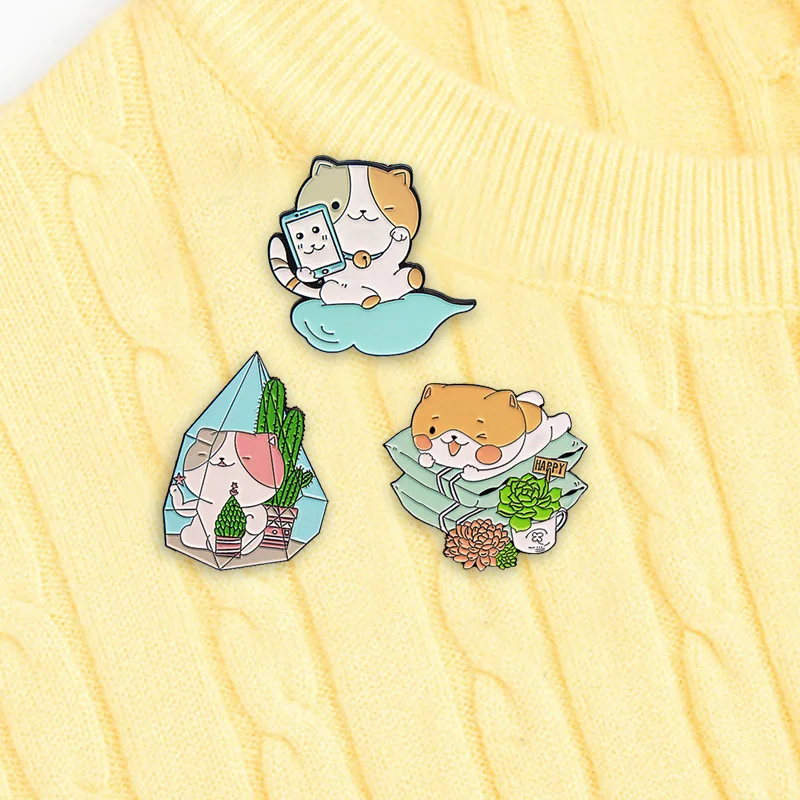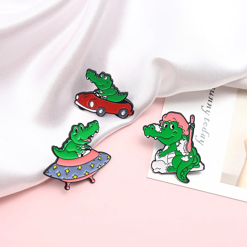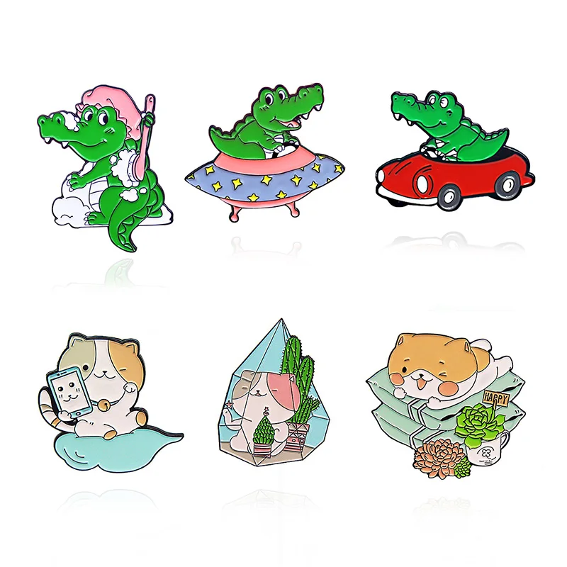 Эмалированная брошь в виде крокодила, кошки, Счастливого животного, в форме кисти, ванной, НЛО, облака, машины, игровой машины, суккулента, булавка на лацкан, милый мультяшный значок