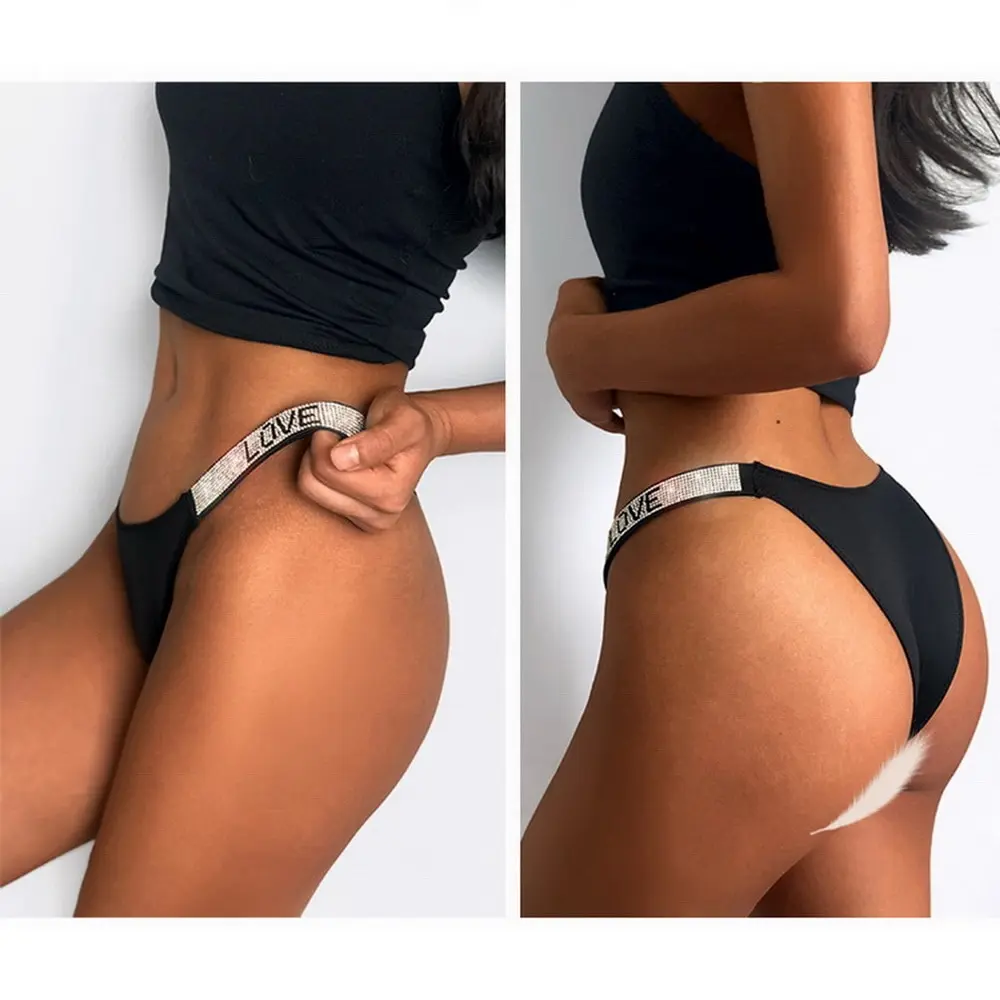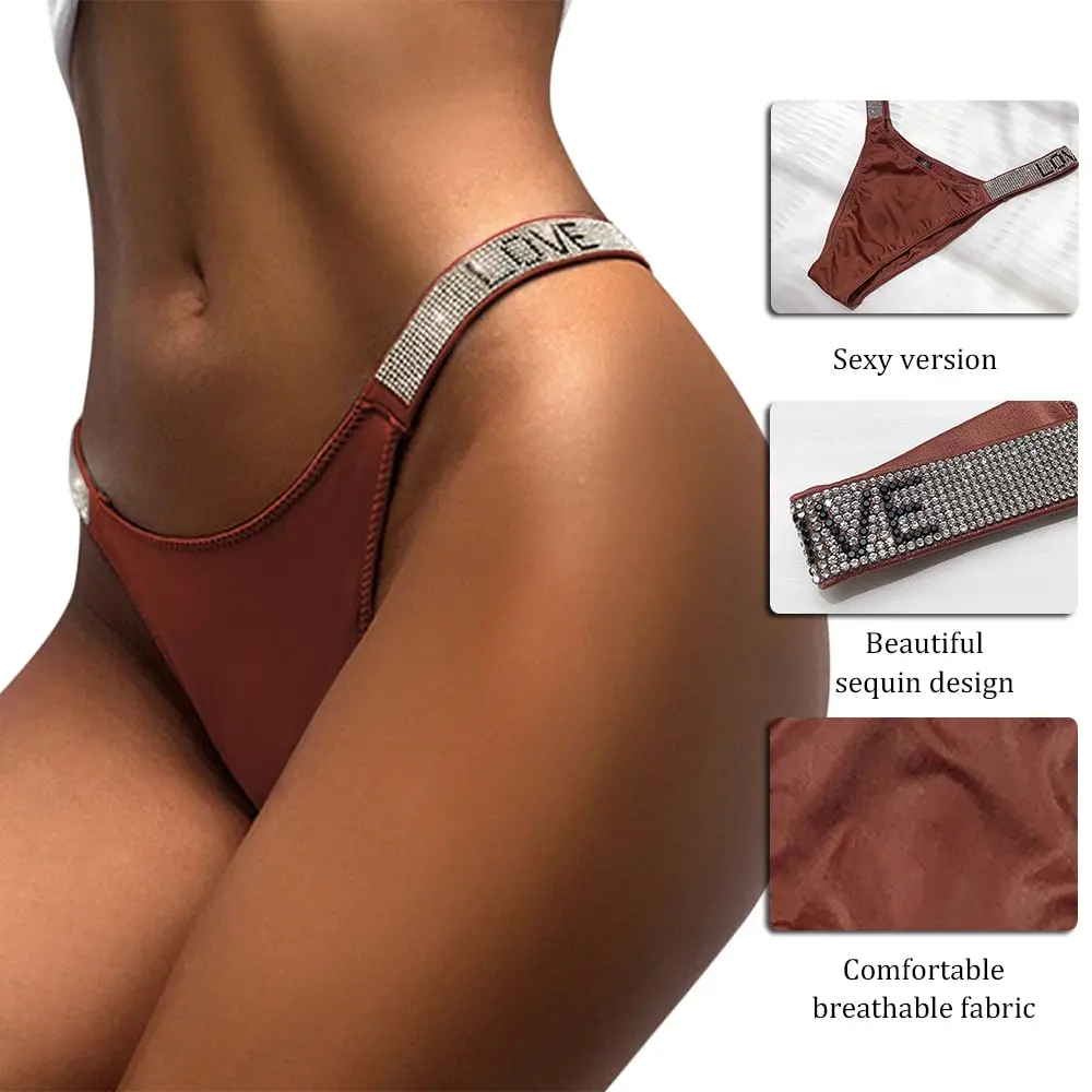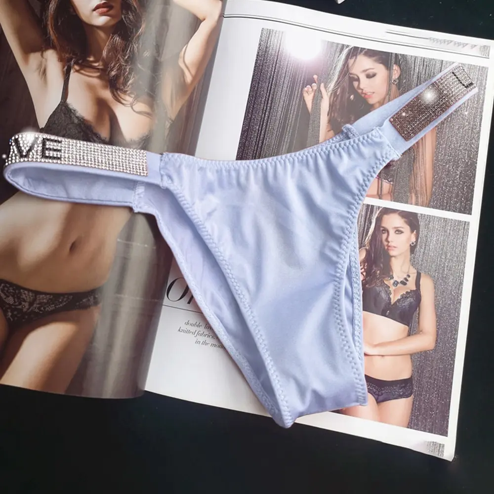 Сексуальное женское нижнее белье с надписью Стразы, спортивные атласные трусики-танга для фитнеса и занятий спортом, нижнее белье