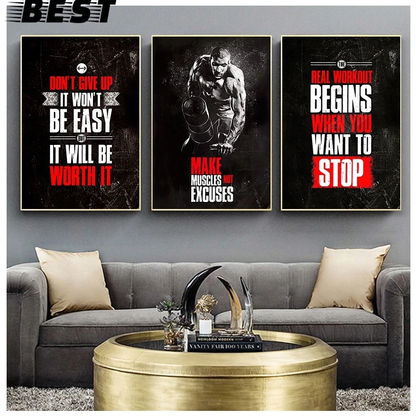 Мотивирующий на занятия фитнесом для бодибилдинга мышц, художественная работа с цитатами, холст, постер, Настенная картина, для дома, тренажерного зала, офиса, Декор
