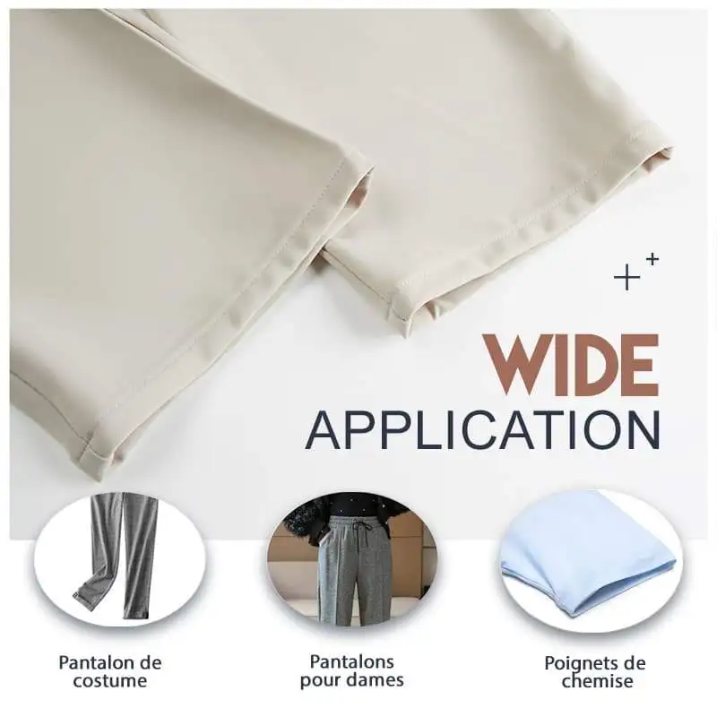 Широкое применение-Очень подходит для брюк и манжет, чтобы укоротить одежду до подходящего положения. Также идеально подходит для подделки или снятия разрывов одежды, потертостей и внутренних изделий, изготовленных из ткани самостоятельно. Используйте эту пасту для брюк, потертых джинсов, штор и т. д.