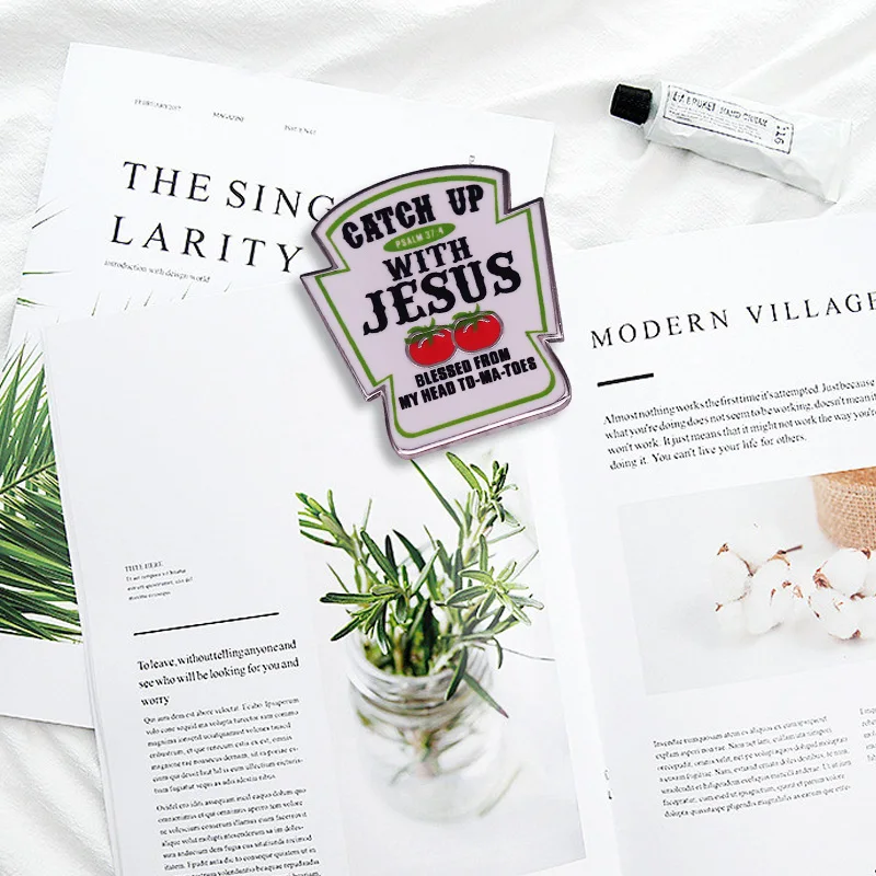 Значок на лацкан с Иисусом, эмалированная значок с томатом, христианский светящийся ретро-аксессуар