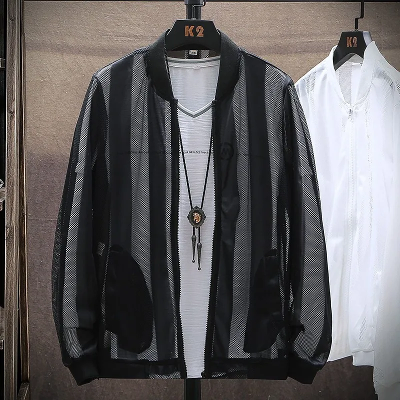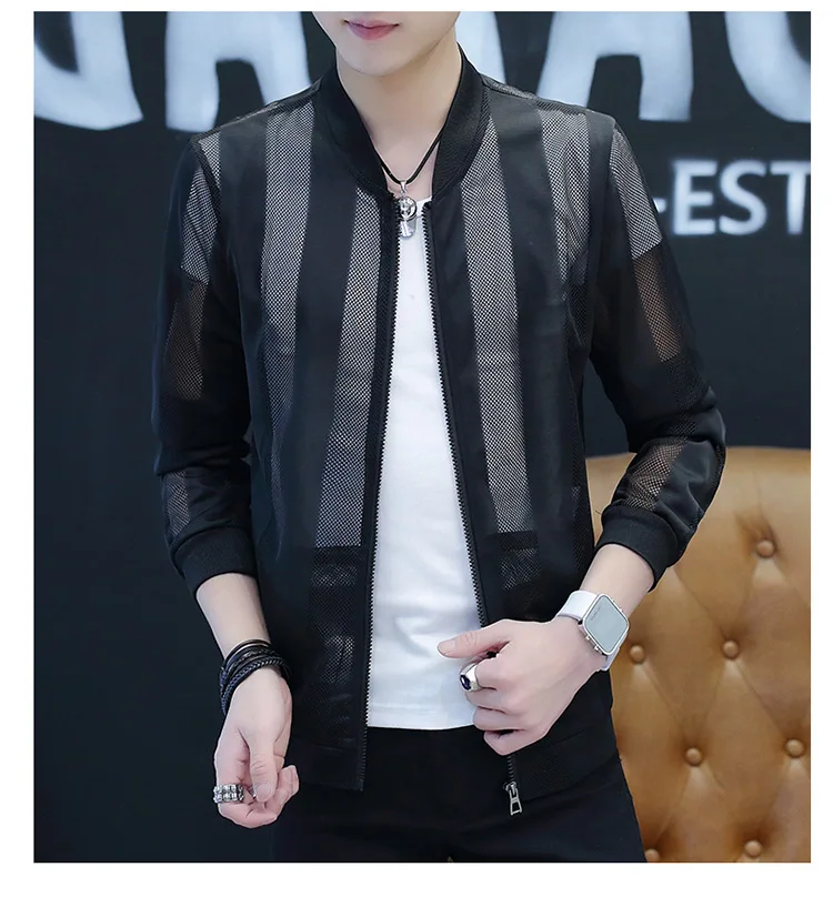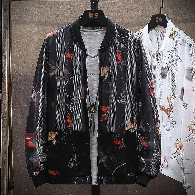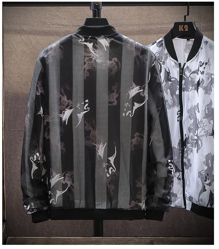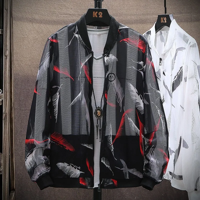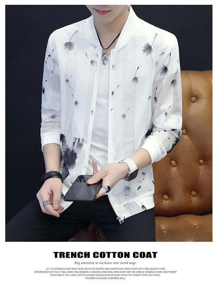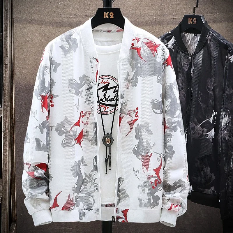 Одежда для защиты от солнца, Солнцезащитная одежда летние куртки для мужчин модные 2021 уличная Slim Fit бомбардировщик куртка со стоячим воротником и принтом полые пальто