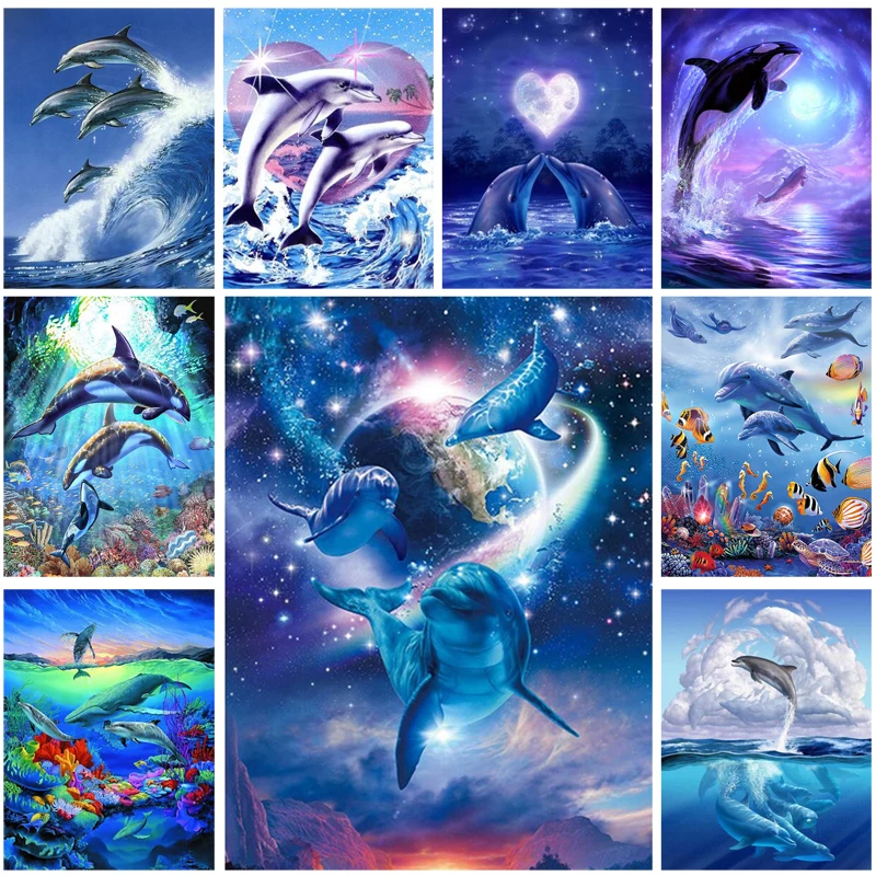 5d алмазная вышивка сделай сам, дельфины, пейзаж, 3d Алмазная живопись, мозаика, вышивка крестиком, домашний декор, круглая картина, подарок для любви