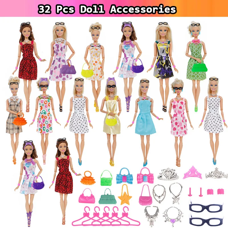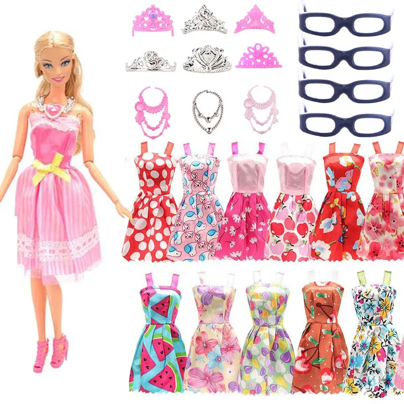 Аксессуары для кукол Барби, 1 комплект, аксессуары для одежды, обувь, сапоги, платье, сумочки, вешалки с короной, одежда для кукла в очках 12 дюймов