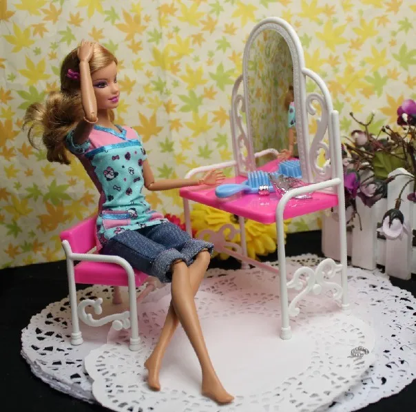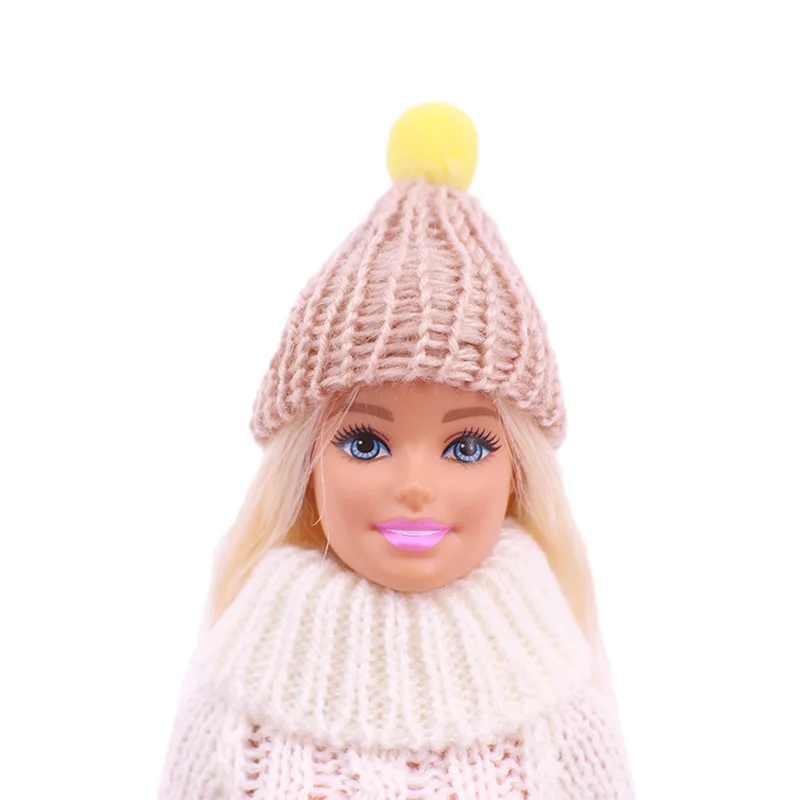 Пошито вкривь и вкось из каких-то отходов упаковочных или оберточных материалов - не из ткани точно, на фото можете наблюдать, как платье стоит само по себе на столе. От сумки только половинка. В общем, из этого набора в мусорку не отправились только вешалки, очки и пара ободков. Но лучше их покупать в составе какого-то другого набора, не берите этот, серьезно.