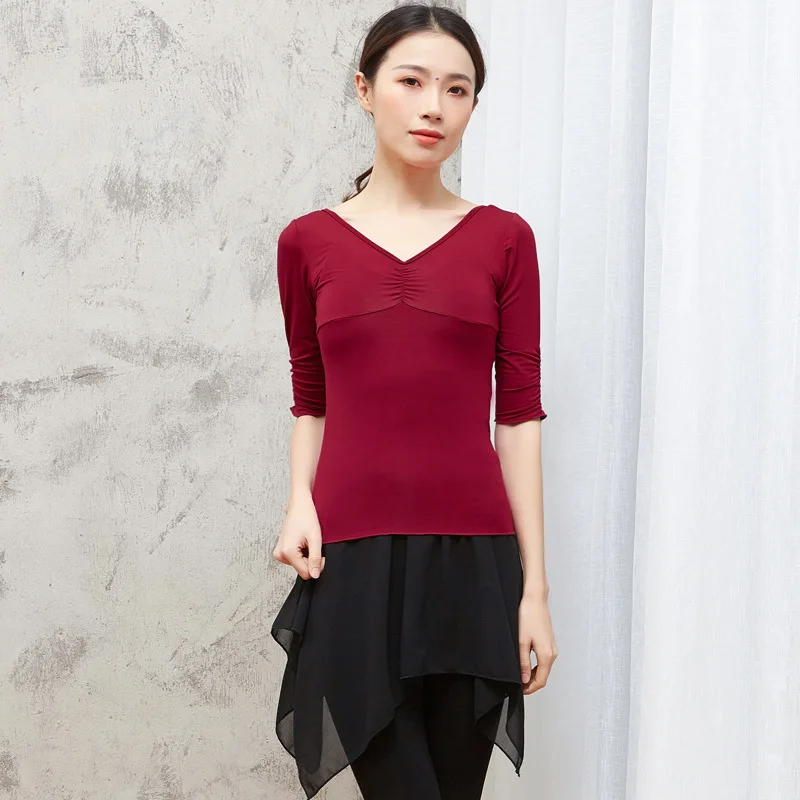 Для танцев, тренировочная одежда Топ для женщин Женские китайские туфли для латинских танцев для физических упражений, облегающая одежда из модифицированного вискозного волокна для занятий йогой с длинным рукавом; Одежда для танцев