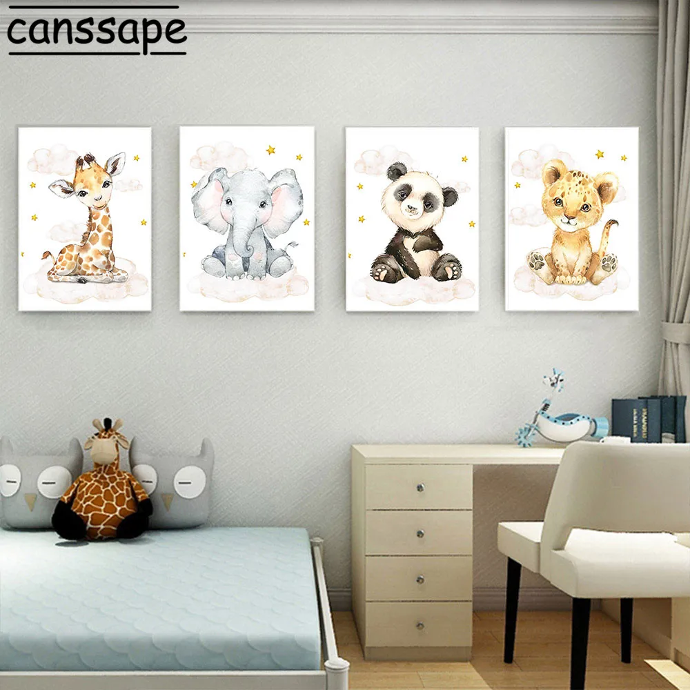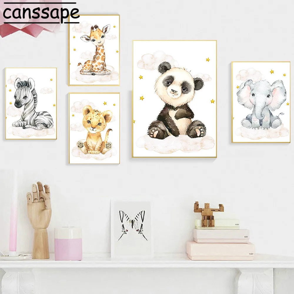 Плакат с животными, панда, слон, холст, принт жираф, картина с изображением зебры, настенные художественные плакаты, скандинавские настенные картины, декор детской комнаты