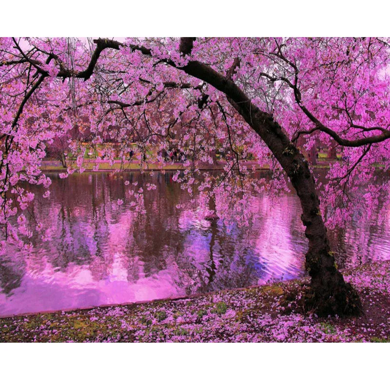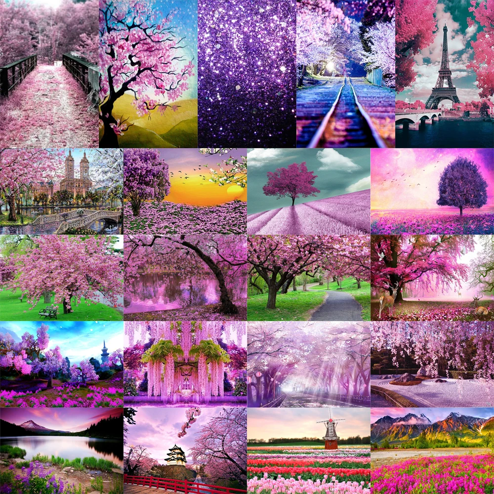Алмазная живопись 5d "сделай сам", полная из круглых алмазов, домашняя вышивка, художественное украшение, розовый цветочный ландшафт