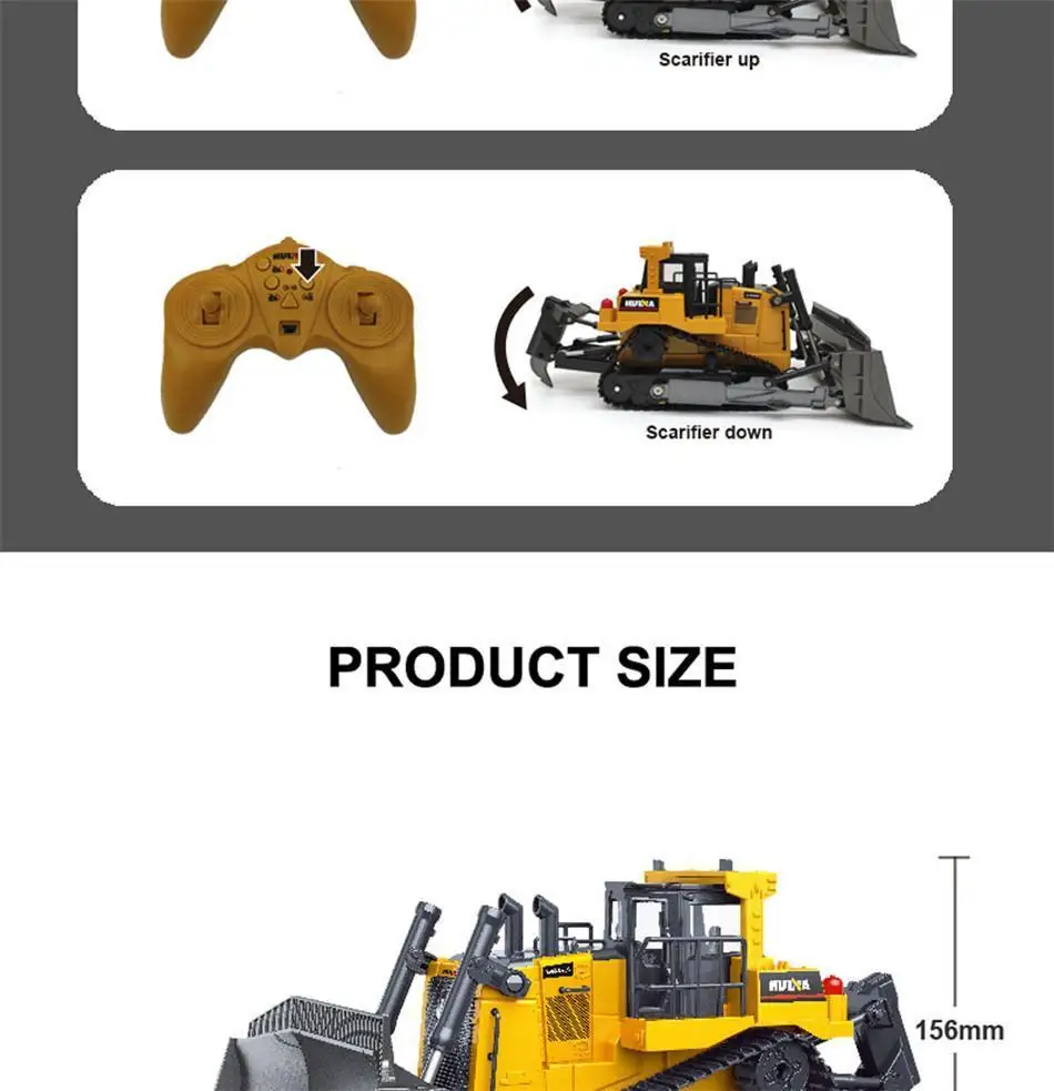 Бульдозер Huina 1569 1:16 8-канальный с дистанционным управлением, грузовик, хобби, Инженерная техника, машина на управлении, радиоуправляемая машина, игрушки для мальчиков