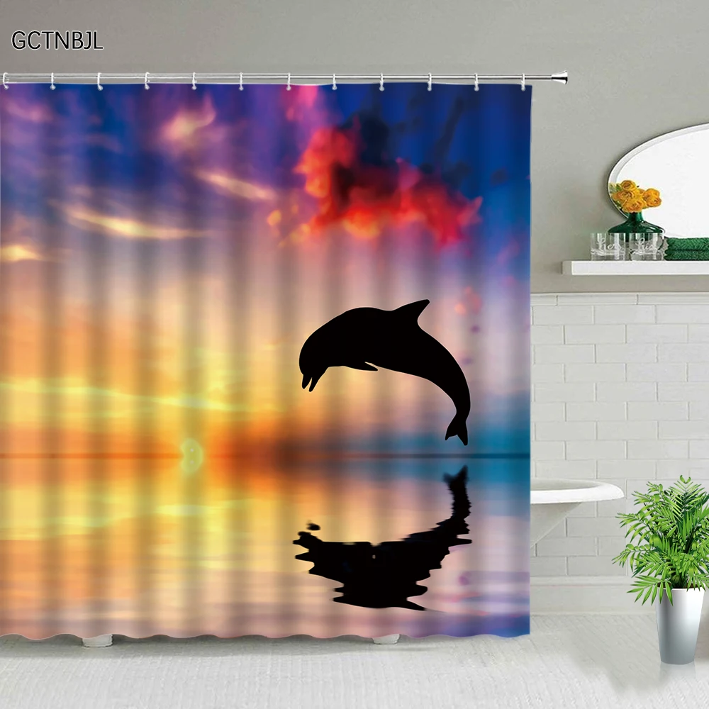 Занавеска для душа из полиэстера, закат, сумерки, морская волна, ок...
