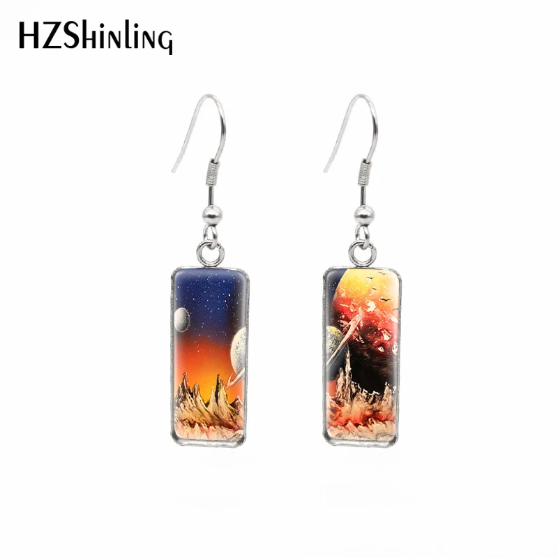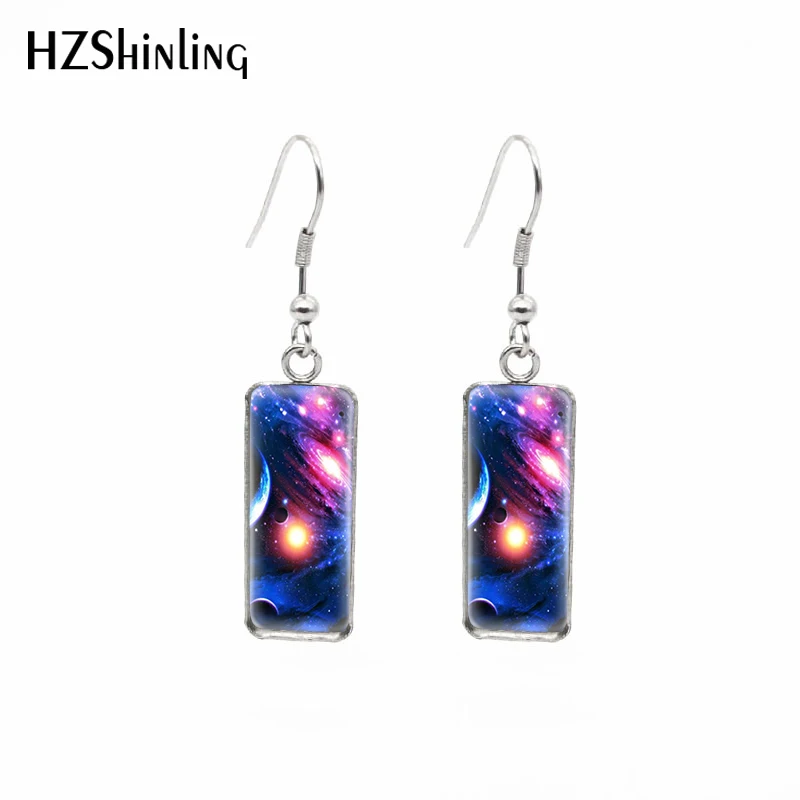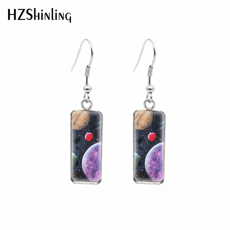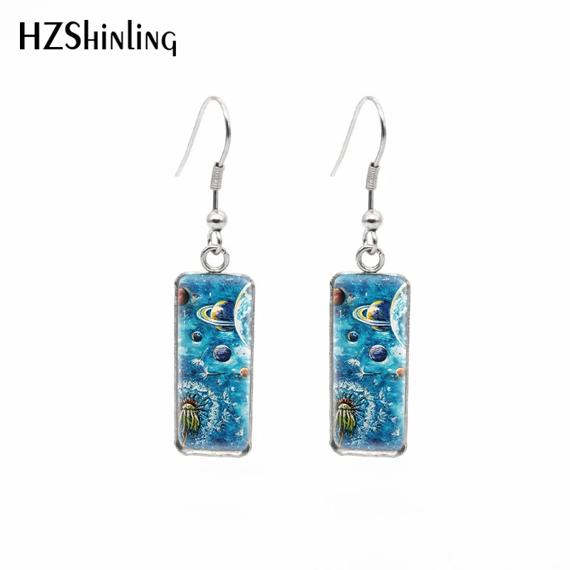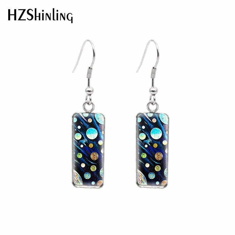 Новинка 2021, художественные прямоугольные серьги в виде планеты с космическим пространством, красочные серьги в виде галактики и рыбы, стеклянный кабошон, ювелирные изделия ручной работы
