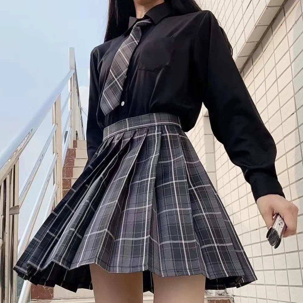 Юбка женская плиссированная с завышенной талией, черная Готическая пикантная клетчатая мини-юбка, форма для студентов, цвет дымчато-серый, на лето