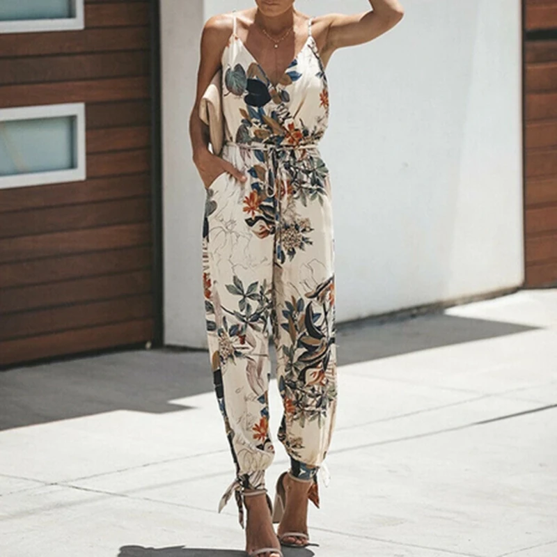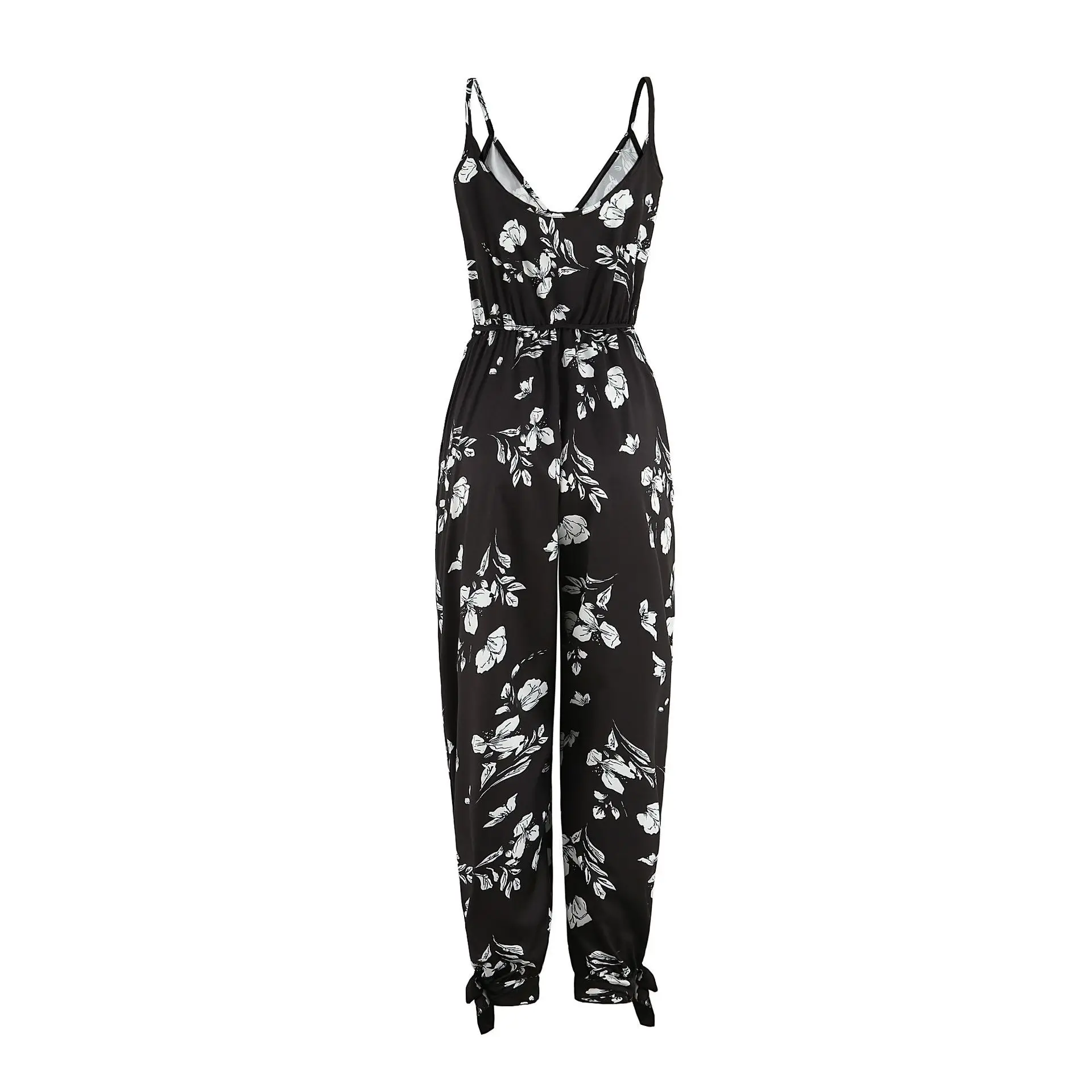 Комбинезон Женский Повседневный Без Рукавов, модный боди в стиле бохо с цветочным принтом, свободные длинные брюки, мешковатые брюки, Ромпер Для женщин на лето