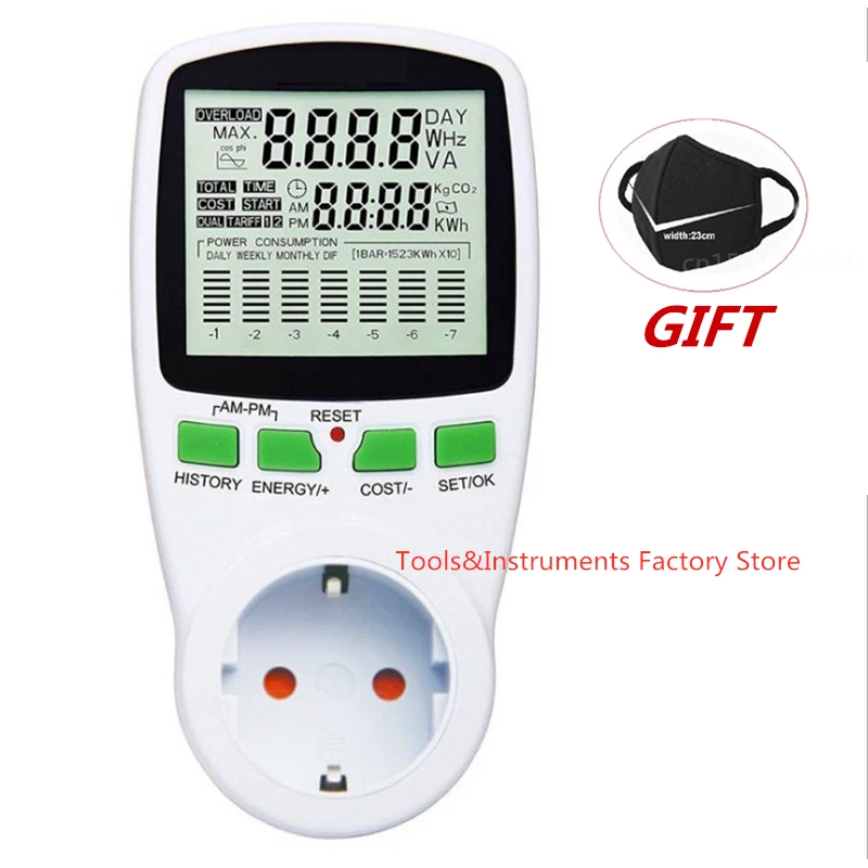 220V AC EU цифровой ЖК-дисплей Мощность ваттметр гнездо мощность кВтч счетчик энергии FR US UK AU BR измерительный выход Мощность анализатор