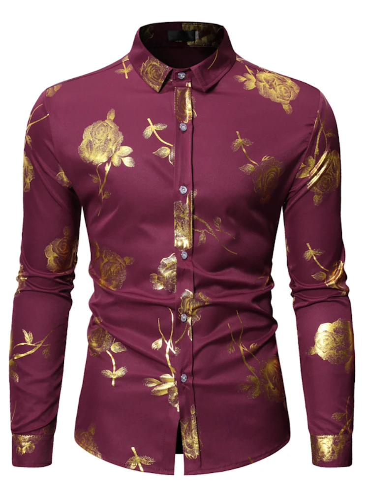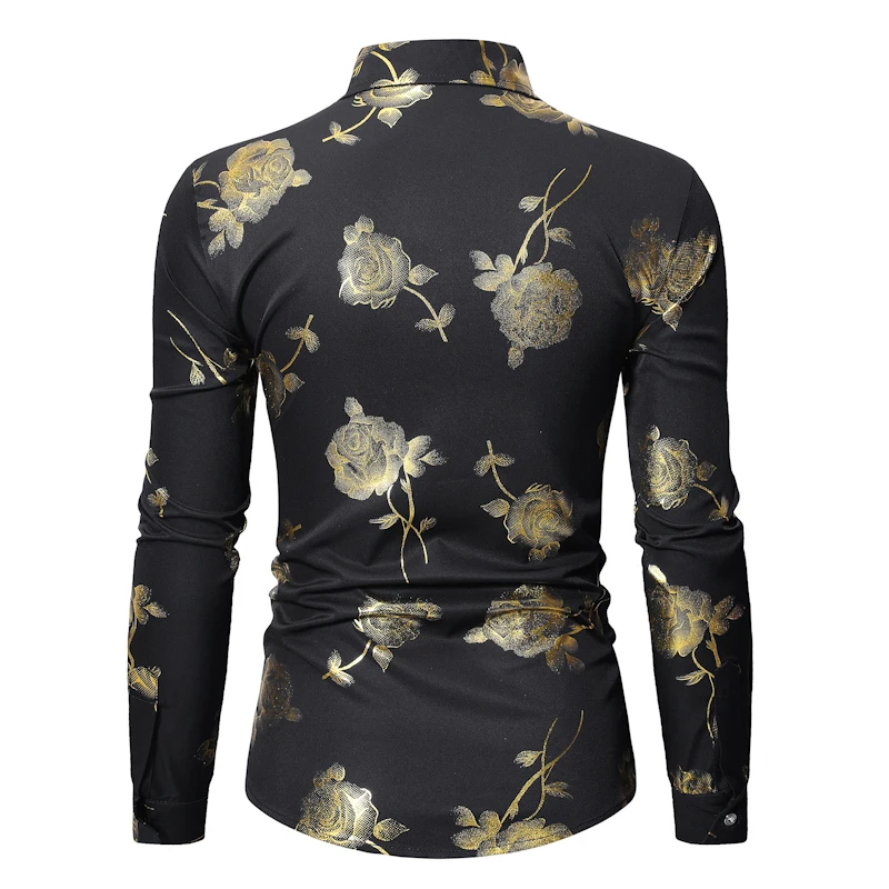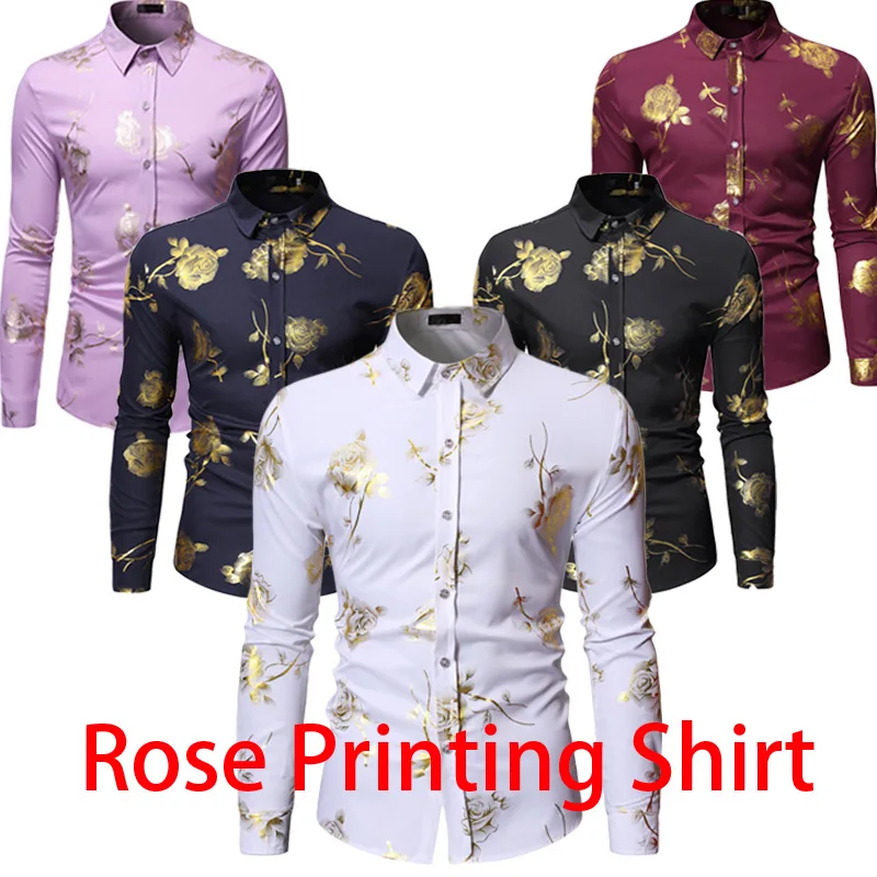Рубашка мужская с длинным рукавом, брендовая белая с принтом золотистых роз, с бронзовым принтом, в стиле стимпанк, для свадьбы, вечеринки, 2019