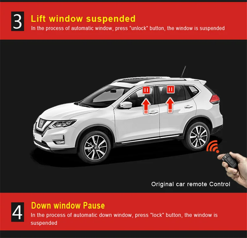 Нажмите кнопку"Замок"От оригинального автомобильного ключа, окно будет приостановлено в падении.