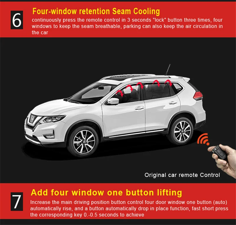 После выключения двигателя нажмите"Блокировка-разблокировка-Блокировка", 4 окна упадут около 50 пикселей пространства для обеспечения вентиляции внутри автомобиля.