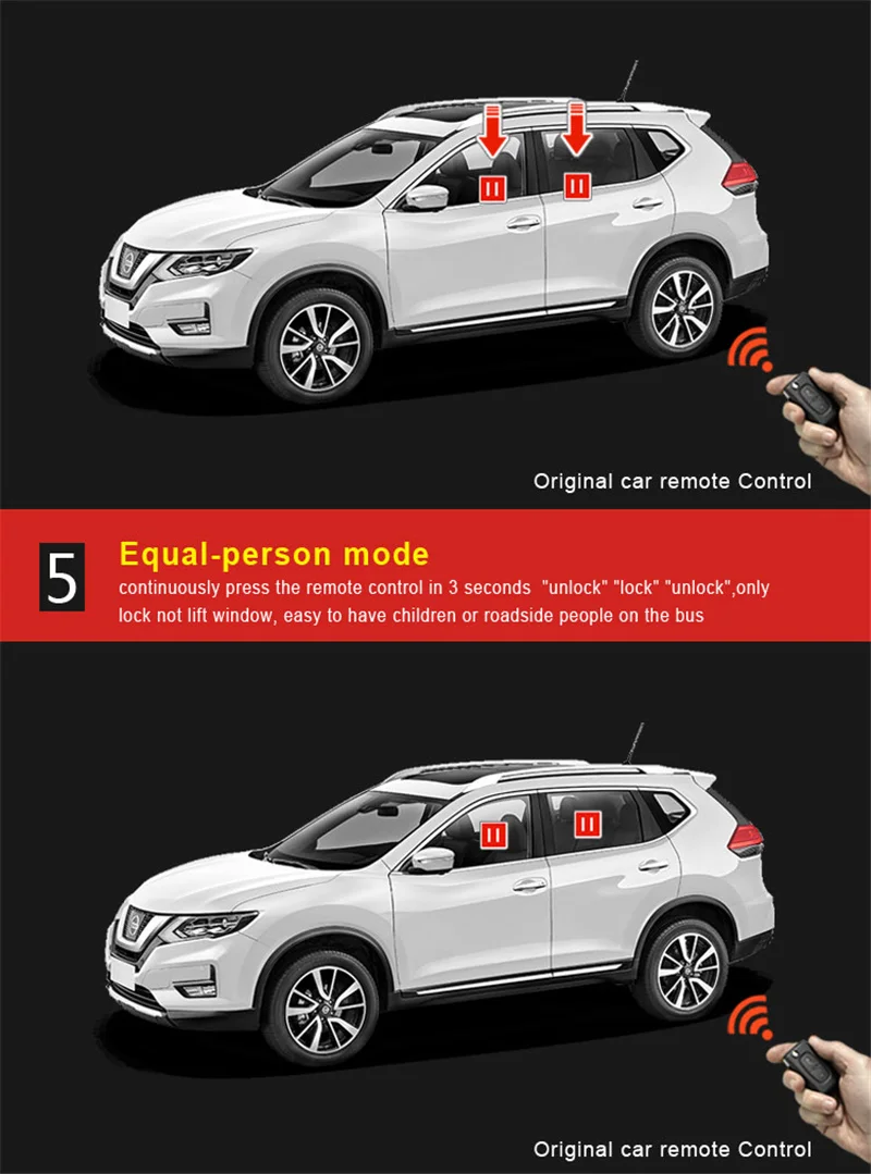 Окно автоматически опускается до конца. Оригинальная функция автомобиля не влияет.