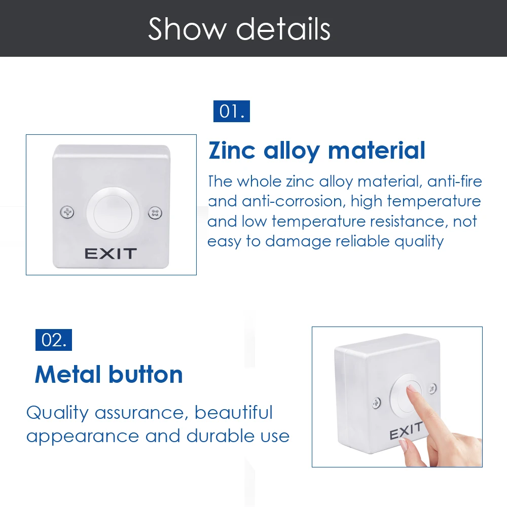 Цинковый сплав двери Кнопка "Exit" переключатель NO/NC/COM система контроля допуска к двери Кнопка выхода механизмом открывания двери, электрический замок двери открывалкаХарактеристика: