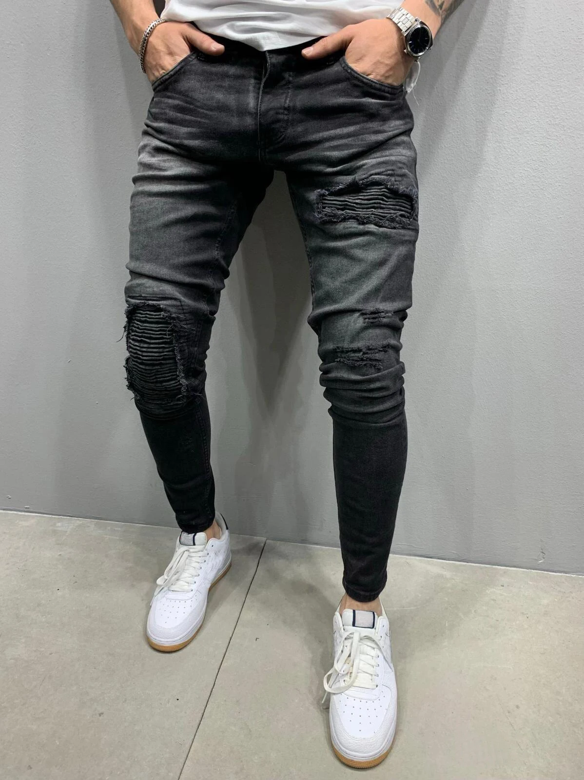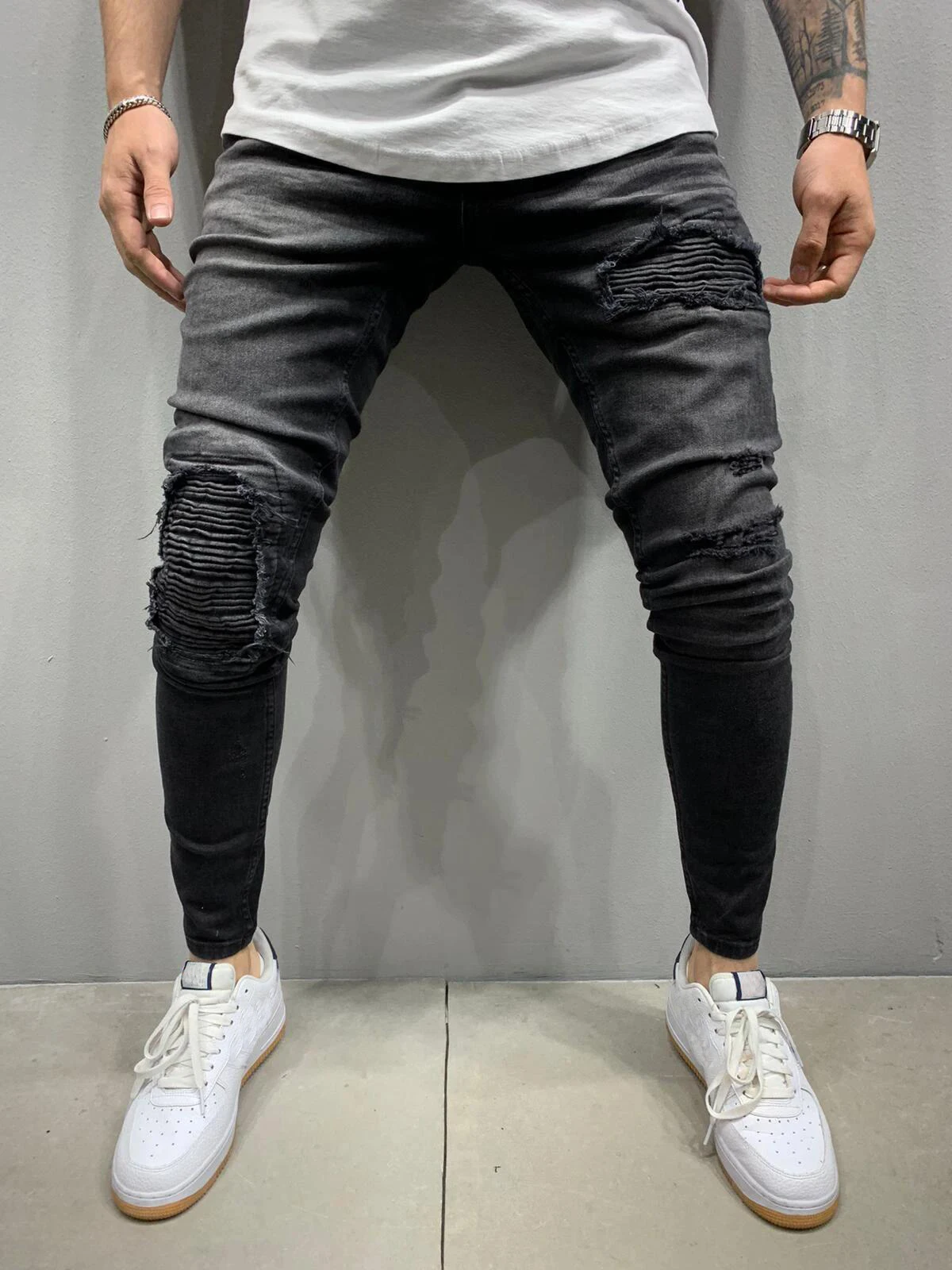 Новинка 2021, мужские джинсы, модные драпированные Стрейчевые Поцар...
