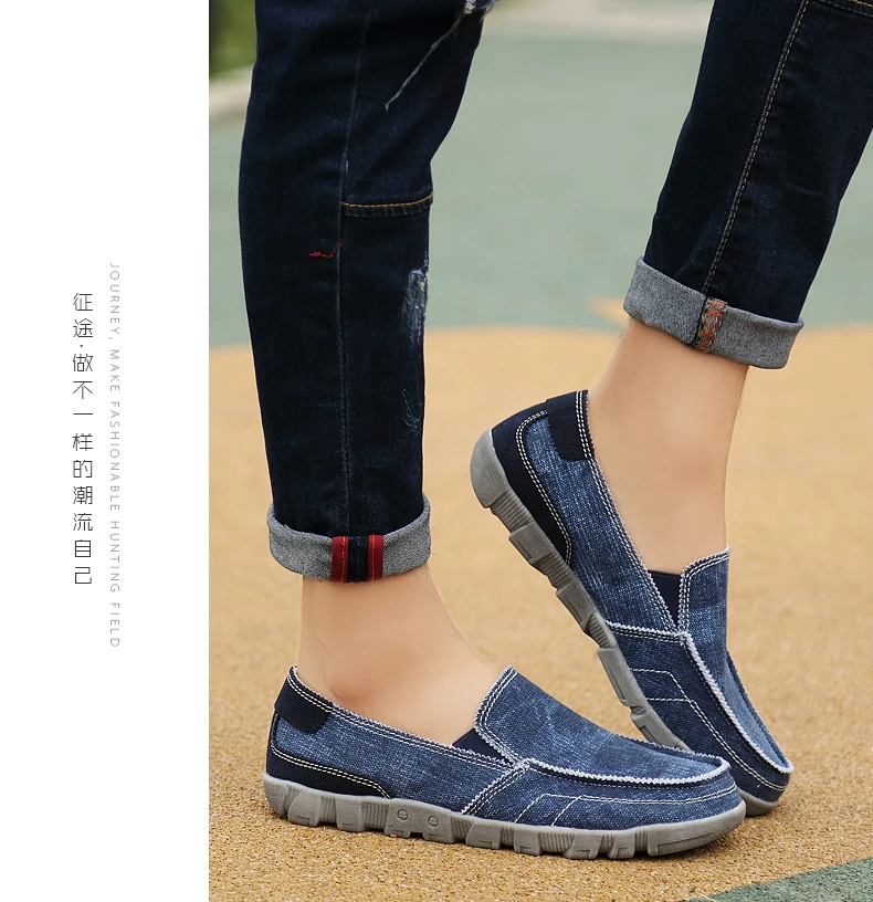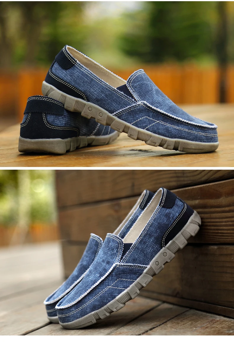 Мужские повседневные туфли из денима, Вулканизированная плоская подошва, мягкие дышащие, без застежки, повседневная обувь, на осень