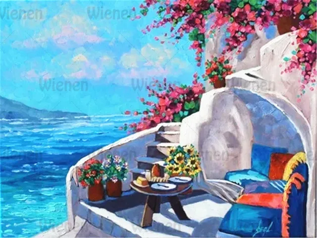 Картина из страз 5D сделай сам, мозаика с мотивом Эгейского моря, п...