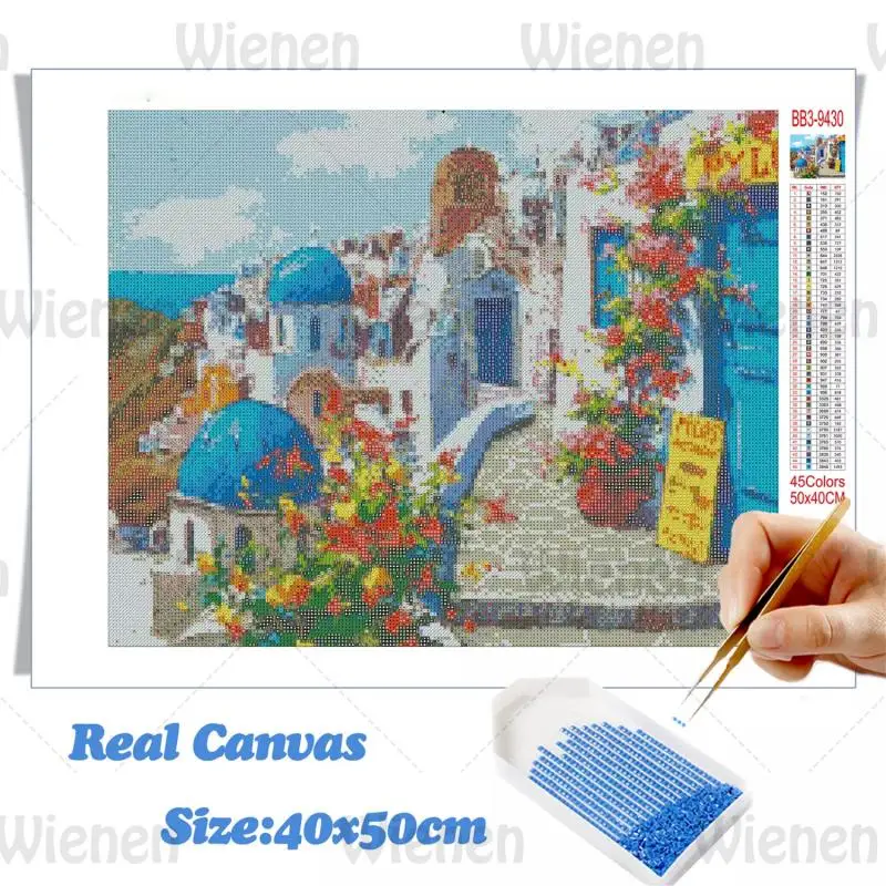 Алмазная 5D картина сделай сам, пейзаж в Эгейском море, полная выкладка, мозаика, вышивка с мотивом Греции, морской пейзаж, домашний декор, хороший подарок