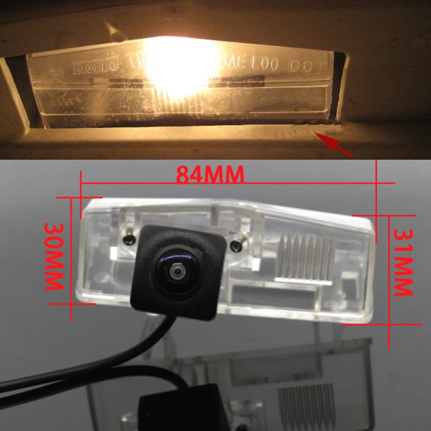 Перед заказом, пожалуйста, убедитесь, что фото размера камеры одинаковое, расположение лампы номерного знака и желтый разъем RCA, чтобы проверить размер камеры вместе, чтобы избежать ошибок. (Если вы не уверены, пожалуйста, оставьте сообщение для сотрудников службы поддержки клиентов: Отправьте модель автомобиля и год + информацию о фото позиции лампы номерного знака)