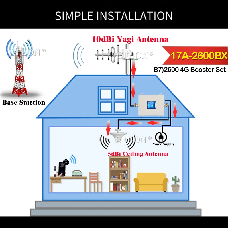 Что входит в комплект ----17A-2600XB = Band7 2600 + потолочная антенна с 3 м кабель + 10dBi Yagi антенна с 10 м кабель + Питание;Только 2600 усилитель = Band7 2600 МГц 4G повторитель сигнала + источник питания;