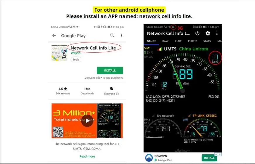 Этот усилитель работает для сигнала 2600 МГц. Только частота соответствует, усилитель может работать. Пожалуйста, проверьте, какой диапазон вашего мобильного телефона используется, прежде всего, с помощью следующих способов: