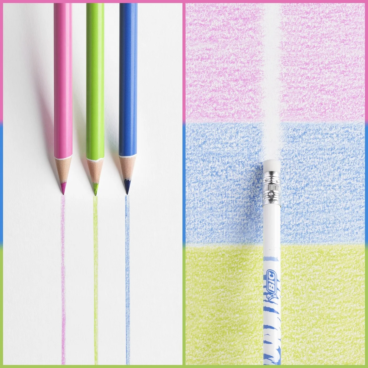 Цветные карандаши, 24 цвета, детские, шестигранные, с ластиком, BIC Kids Illusion, уп. 24 шт., Бесплатная быстрая доставка из РФ