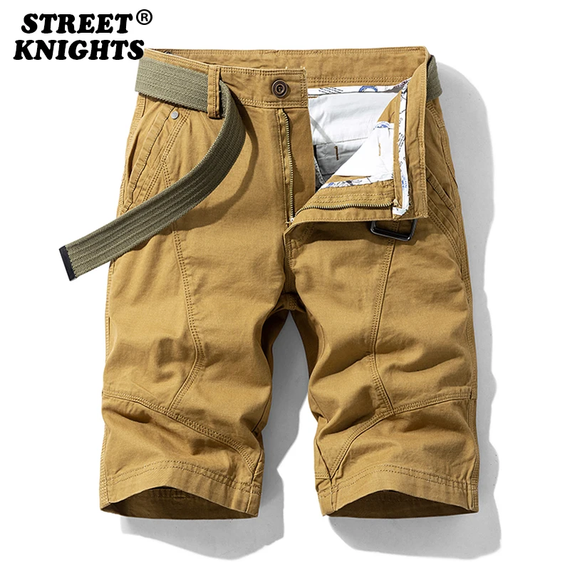 Шорты-карго мужские однотонные, модные бриджи из хлопка, дышащие быстросохнущие Короткие штаны со множеством карманов в стиле хип-хоп, лето 2021