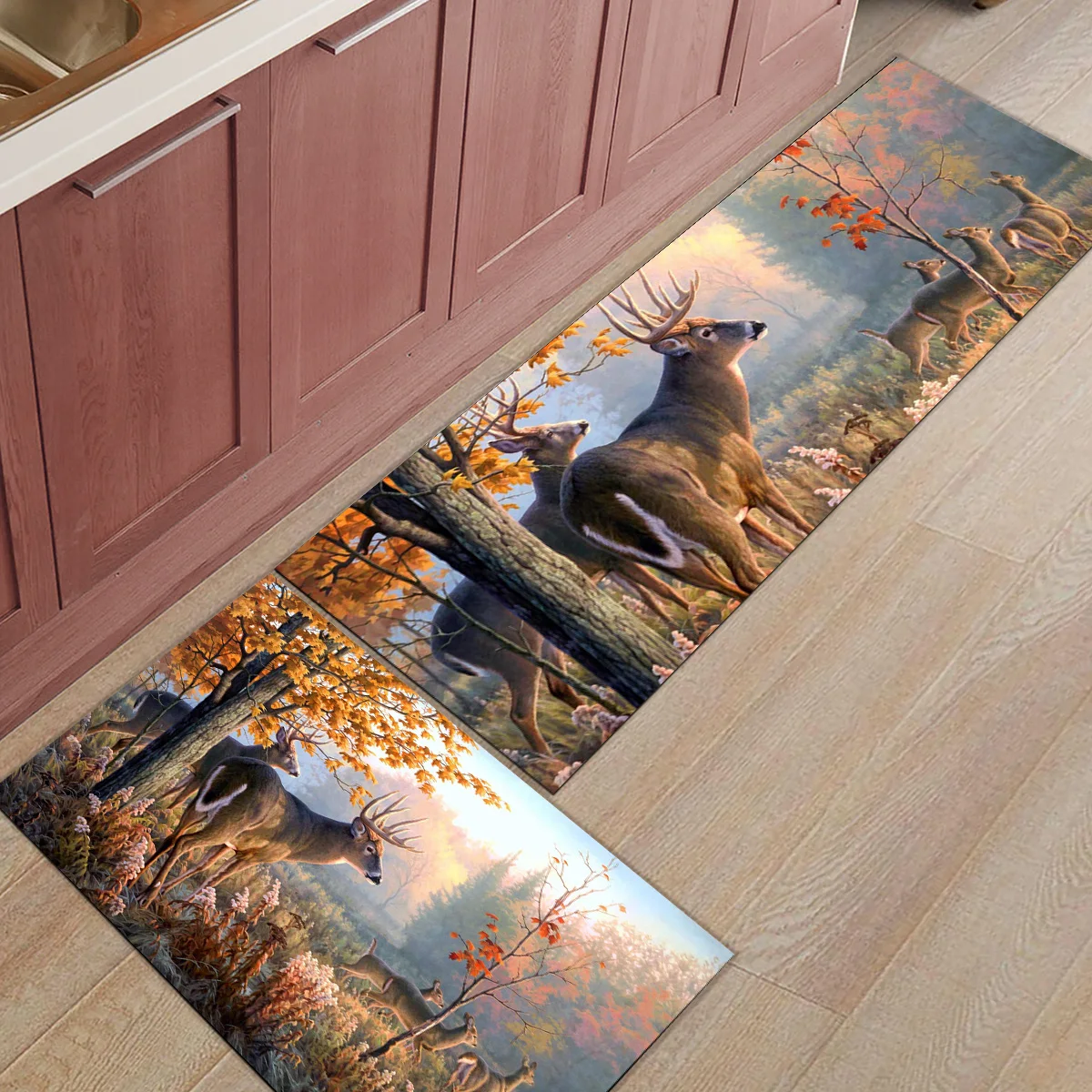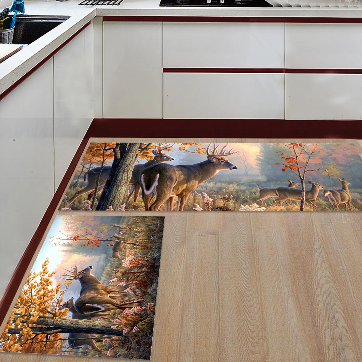 Лесных животных Олень береза клен трава длинный Кухня коврик Домашний коврик для входа анти-скольжения Ванная комната ковры домашние тапочки украшения