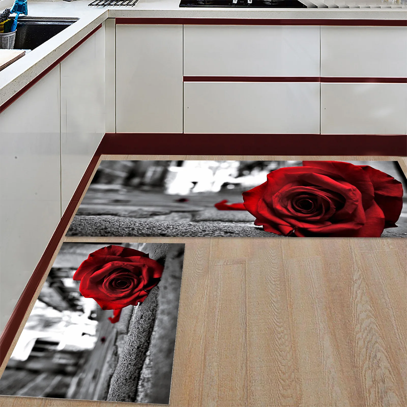 Роза с украшениями в виде цветов, красное, шоссейный велосипед детский длинный Кухня коврик Домашний коврик для входа анти-скольжения Ванная комната ковры домашние тапочки украшения