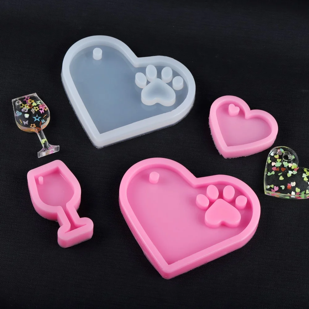 Полые Подвески в виде кошачьей лапы, сердца, медведя, лапы для брелоков, формы для силиконового литья из эпоксидной смолы для изготовления самодельных украшений из полимерной глины