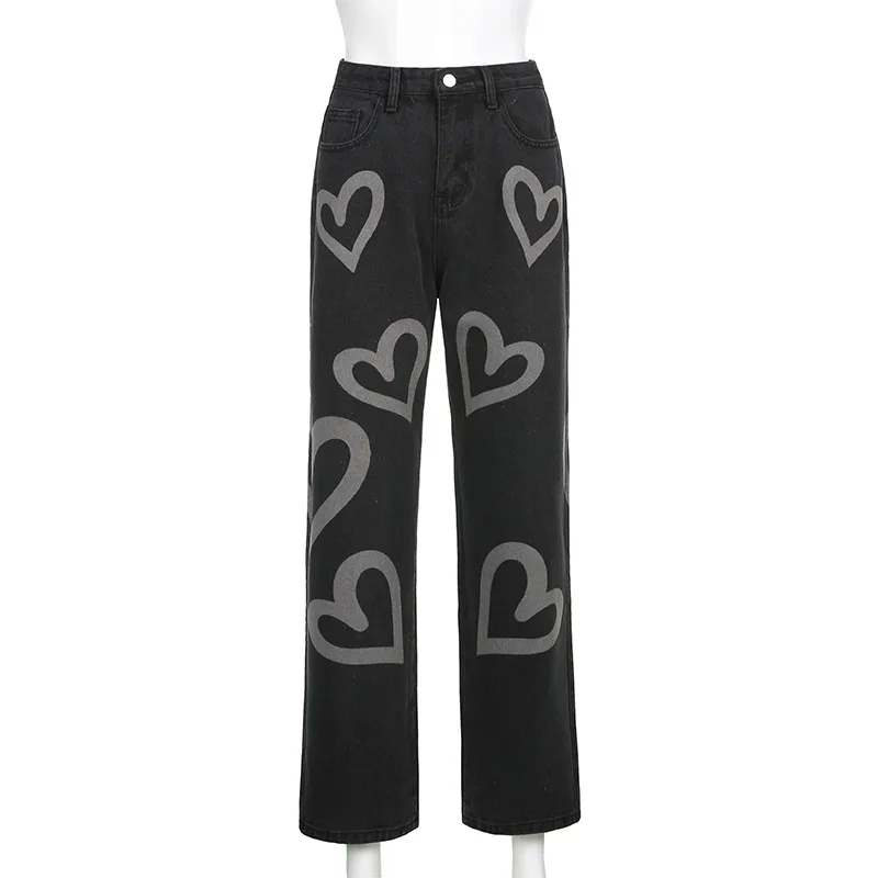 Джинсы женские прямые, с принтом в виде сердца, с высокой талией, в...