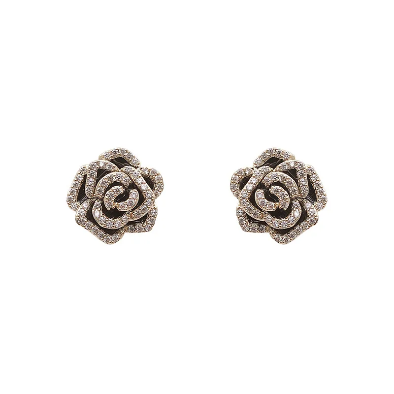 Женские серьги-гвоздики с черным кристаллом и цветком, роскошные свадебные украшения, винтажные модные серьги золотого цвета, роскошные ювелирные изделия