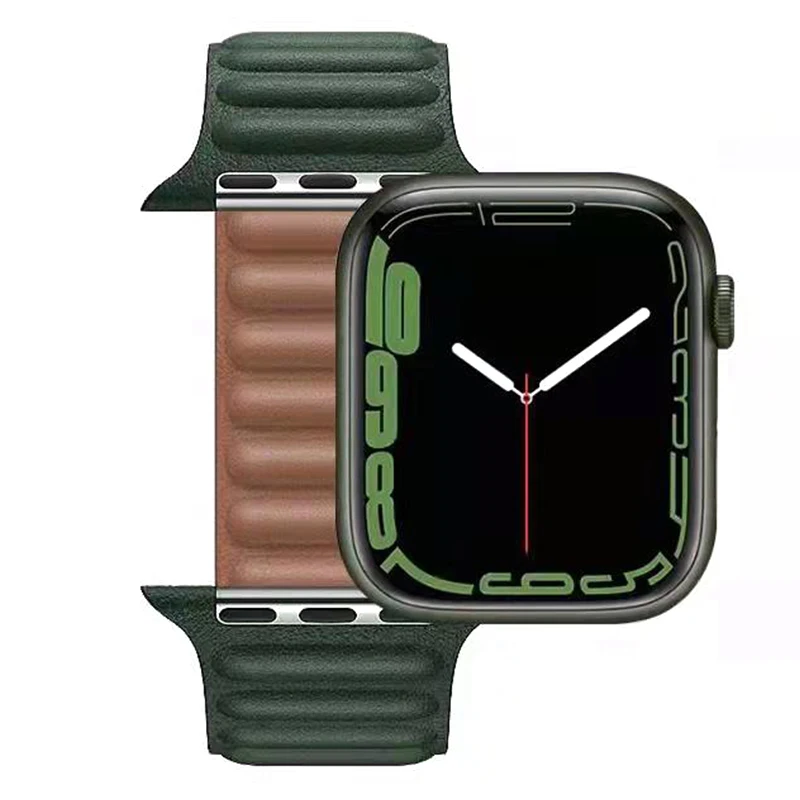 Ремешок кожаный для Apple Watch 7 6 5 4 SE band, оригинальный магни...