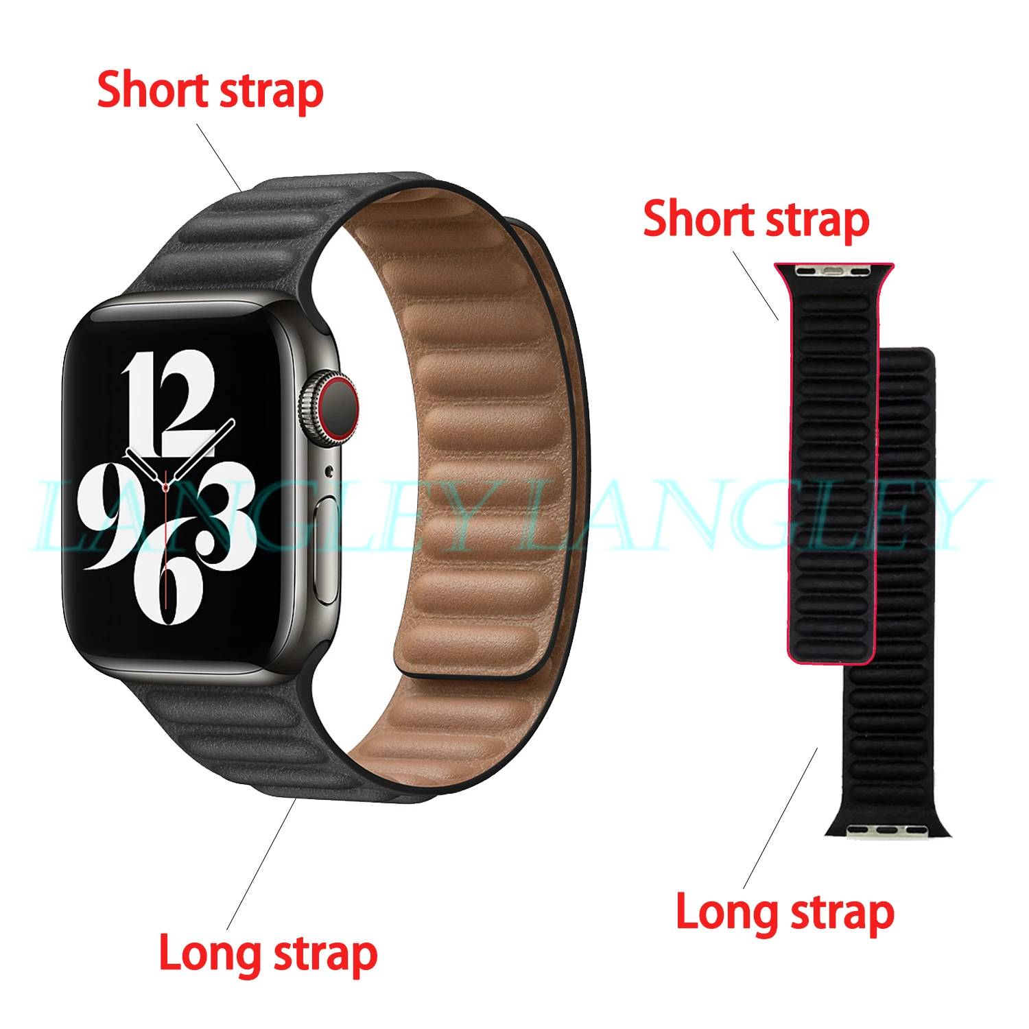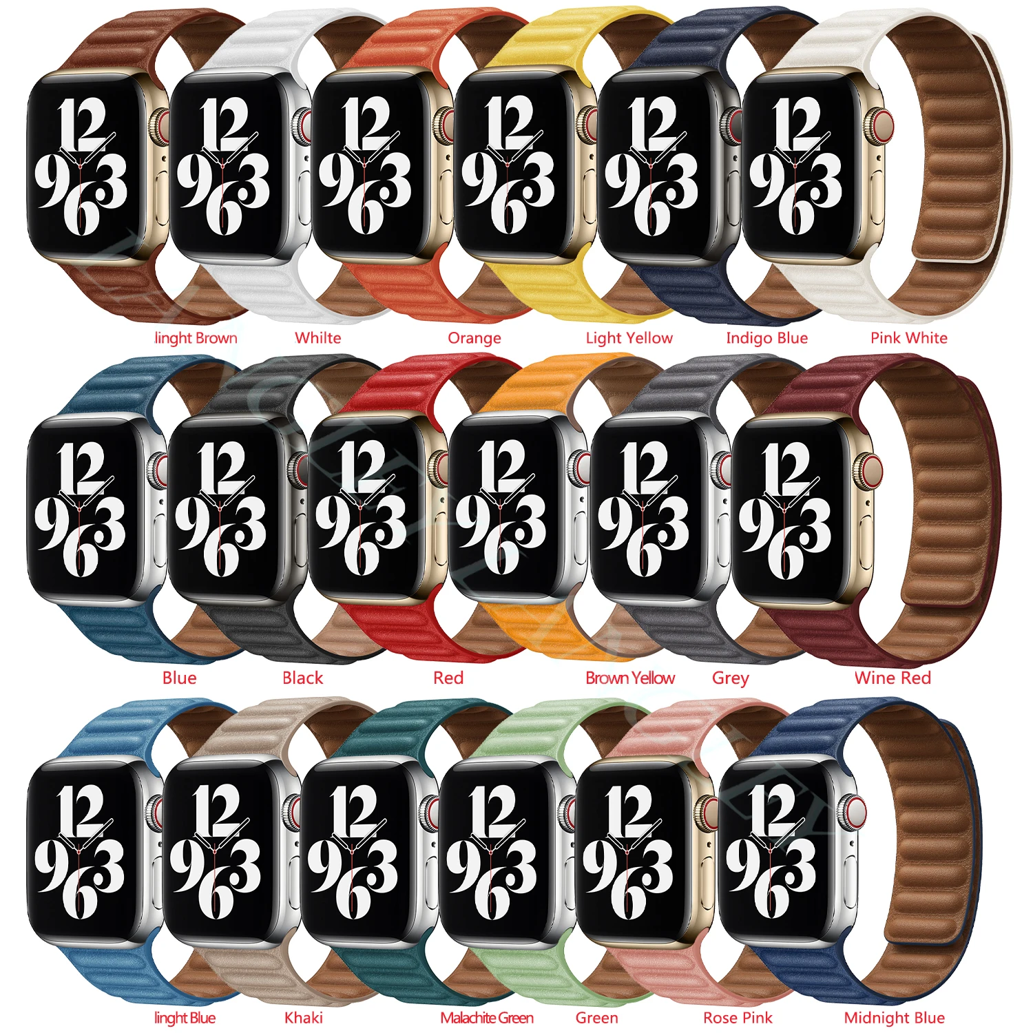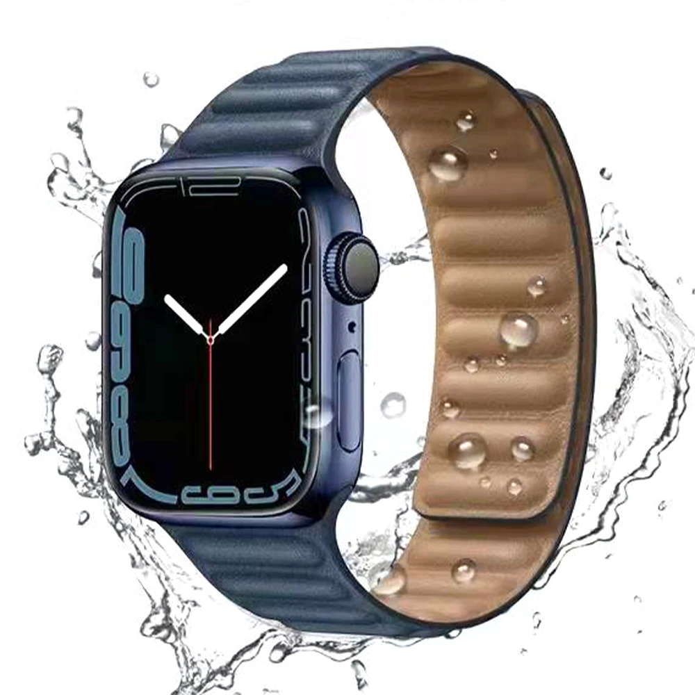 Ремешок магнитный для iWatch 7 6 SE 5 4 3 2 1, кожаный браслет для ...