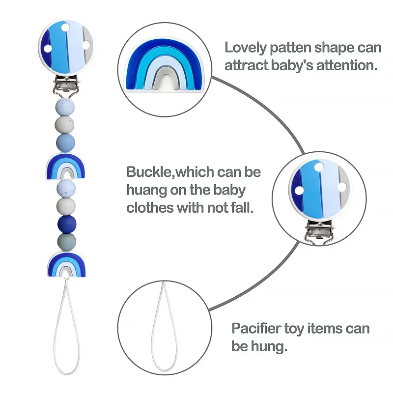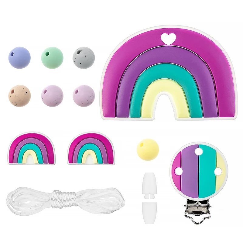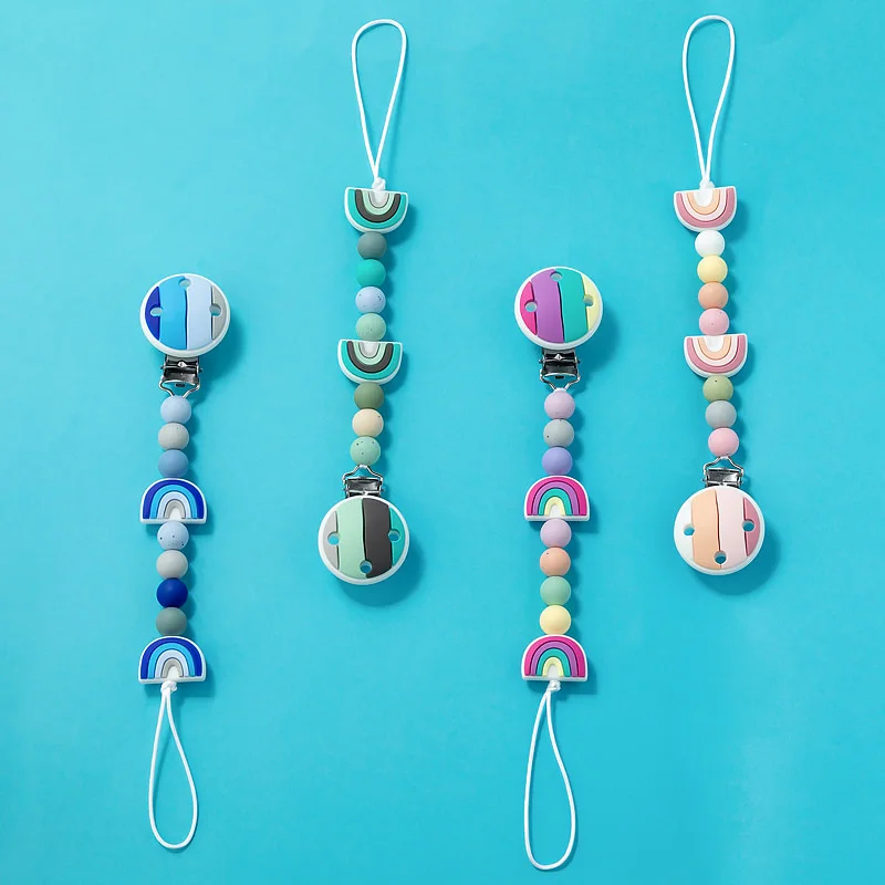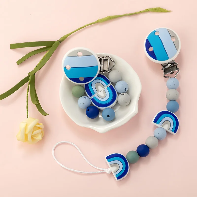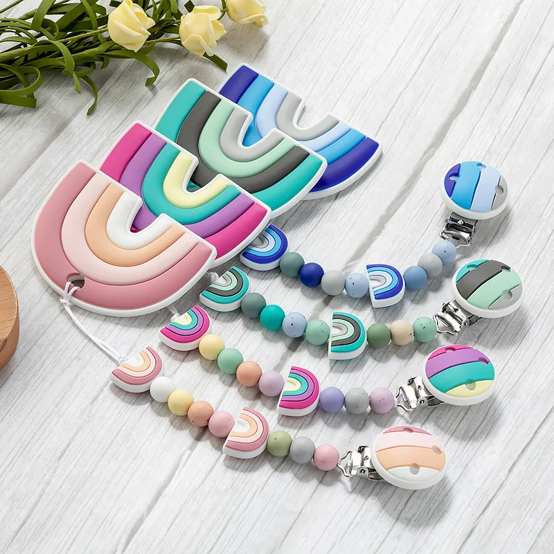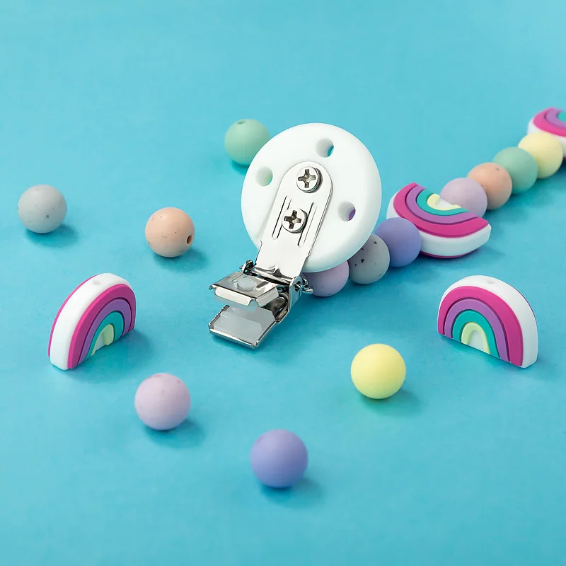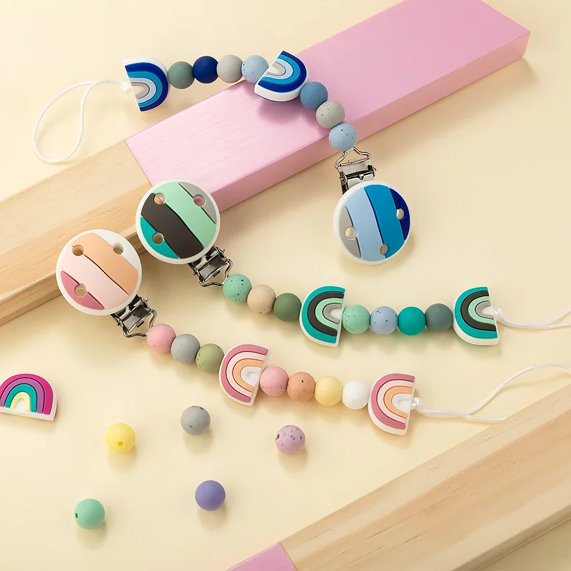 Набор радужных силиконовых бусин TYRY.HU, цепочка для соски, для новорожденных, Силиконовые Прорезыватели для зубов, для пищевых продуктов, не содержит Бисфенол А, аксессуары сделай сам, зажим для соски