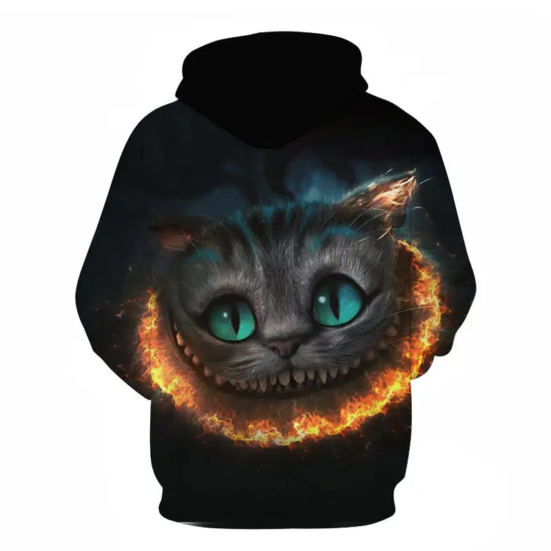 Толстовка Мужскаяженская с 3D-принтом черного кота, повседневный см...