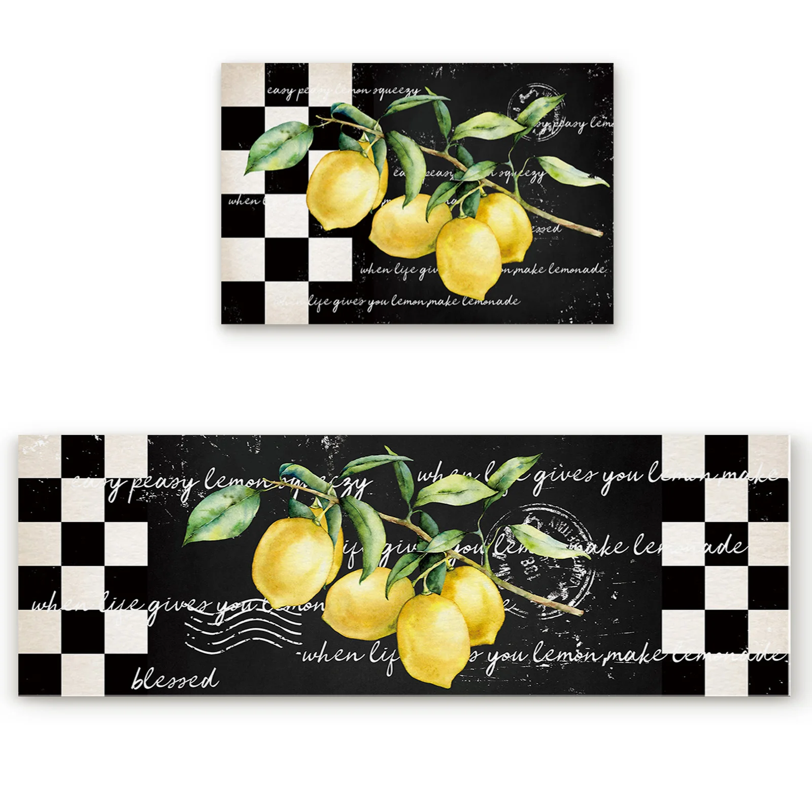 Напольные коврики в клетку с изображением фруктов и лимона, Несколь...