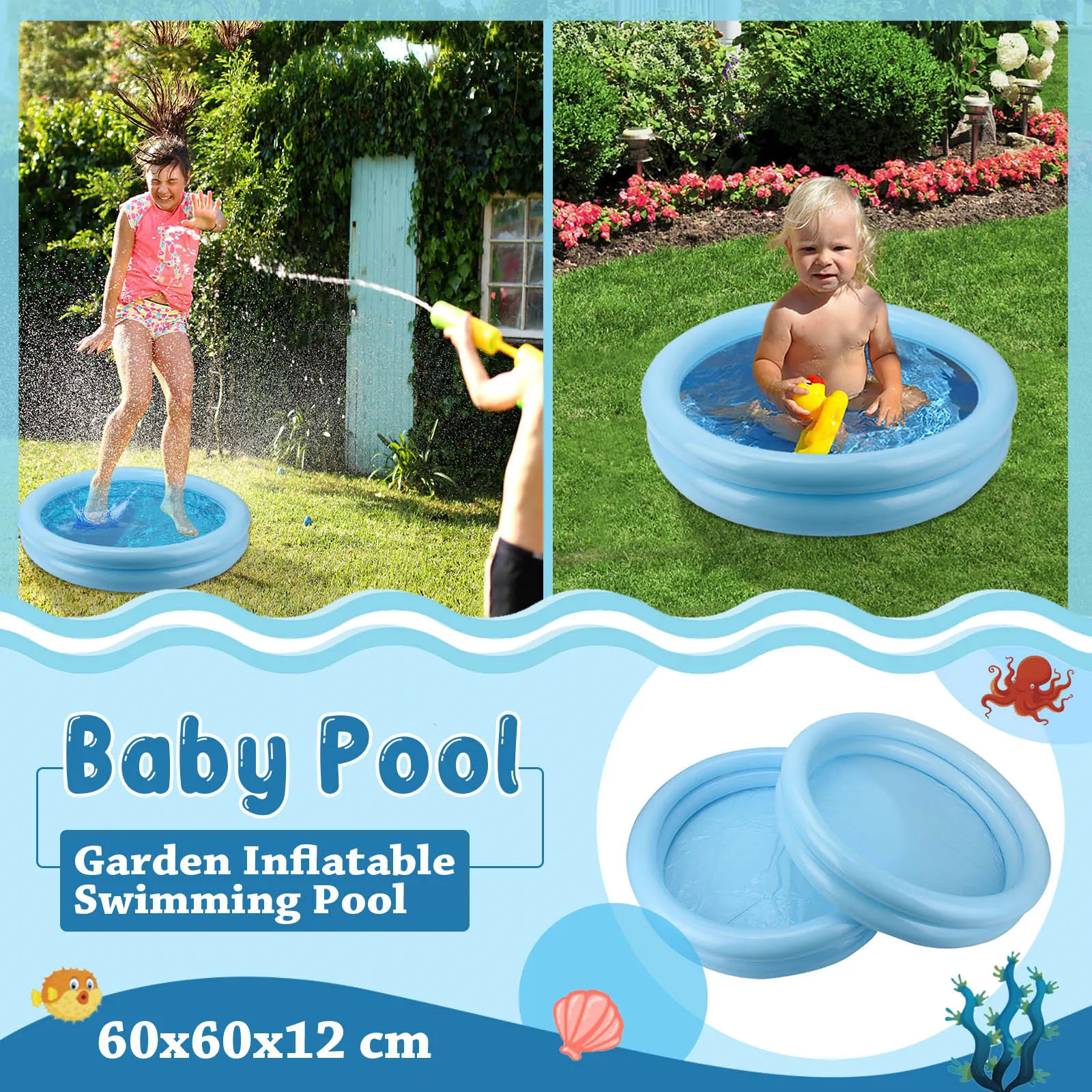 Особенность: Материал: ПВХ Диаметр: 60 см Посылка содержит: 1/2 × надувной бассейн